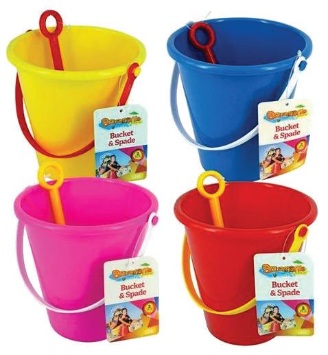 Beach Bucket & Spade Set 18cm 4 Asst Cost: $1.95, RRP $4.95, 921984