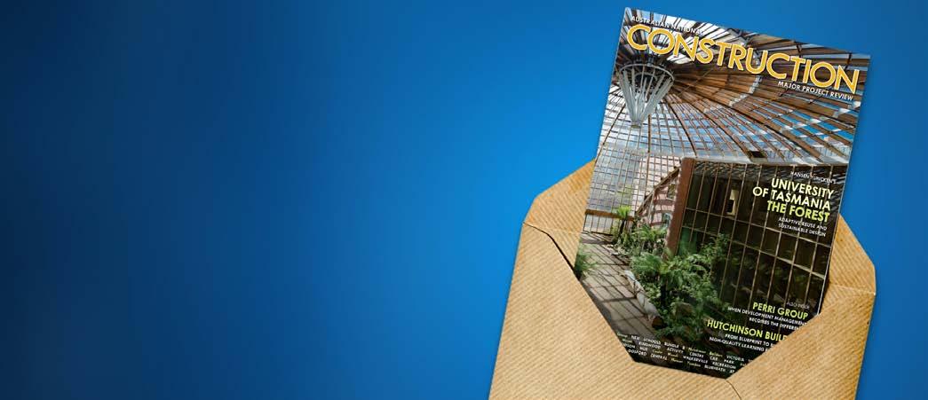 The Australian National Construction Major Project Review and the publisher are not liable for inaccuracy in any advertisement or editorial and do not accept responsibility for any claims made by advertisers/ contributors, or losses as a result of acting on the information provided within the publication.