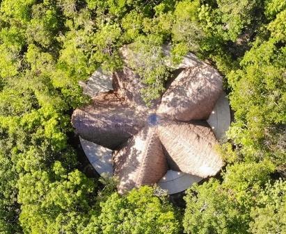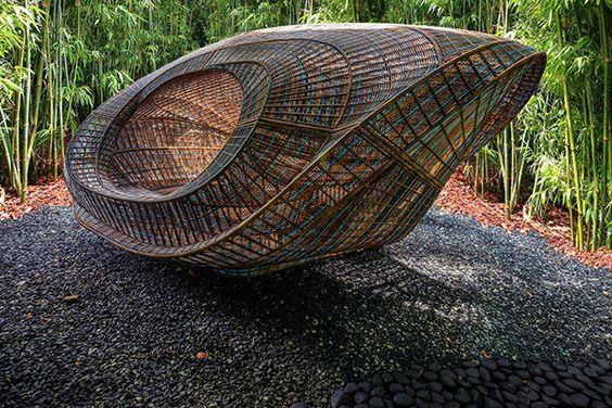 creó la estructura al aire libre, eligiendo bambú por sus credenciales de sostenibilidad, así como su capacidad para resistir las fuerzas de huracanes