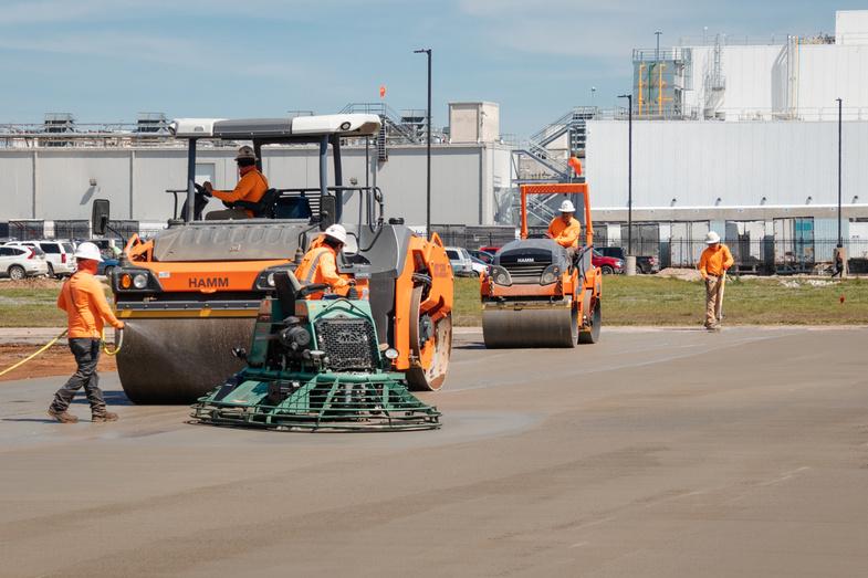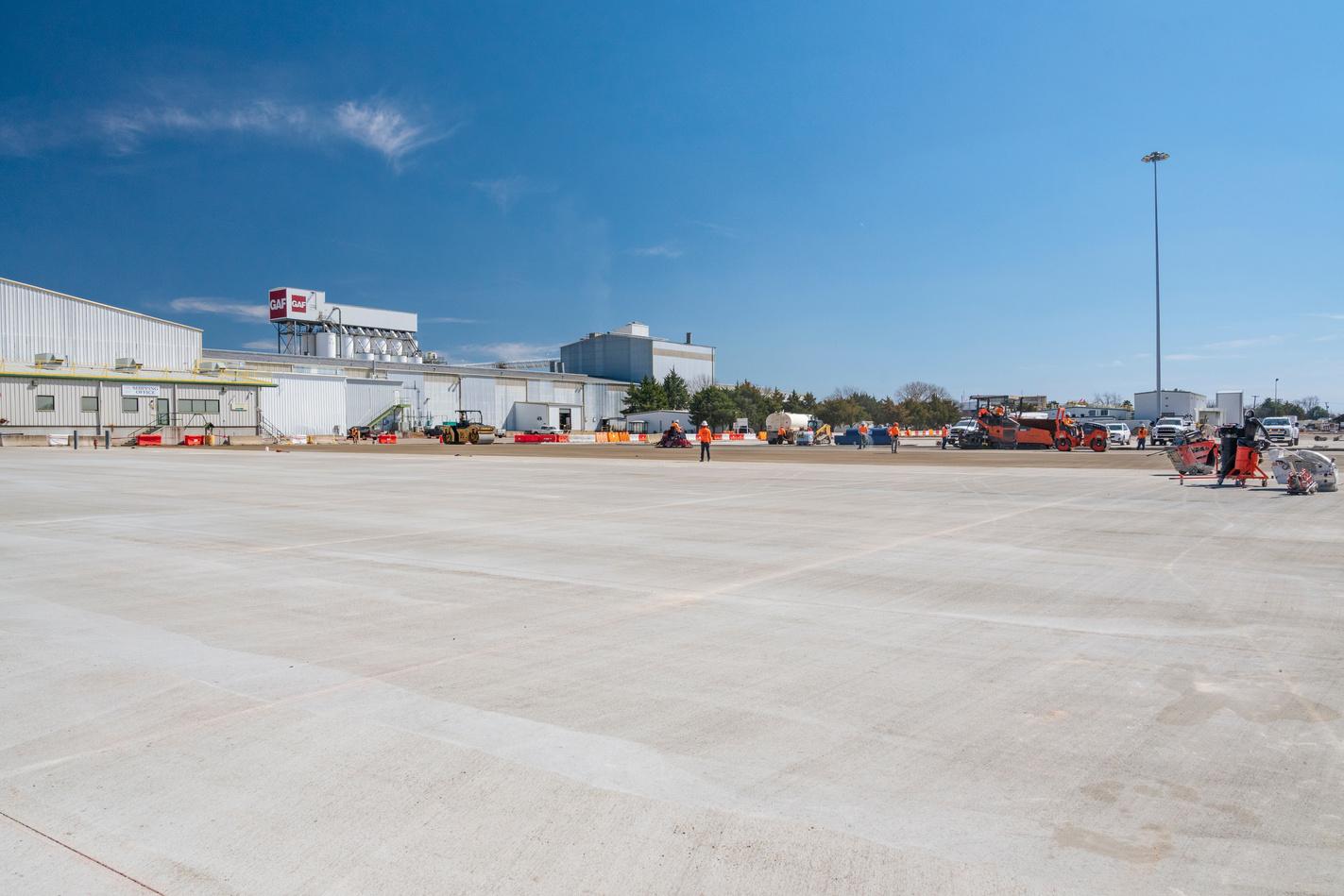 GAF Materials Corp. has kicked off a multi-year expansion in Ennis, TX. The American-owned and operated company produces roofing materials and finishing shingles for more than 100,000 homes annually. Andale Construction was chosen for its Roller Compacted Concrete (RCC). Fast turnaround, cost savings, and longevity made using RCC a no-brainer. Andale Construction's RCC is strong, versatile, and in most cases, looks like conventional concrete paving.