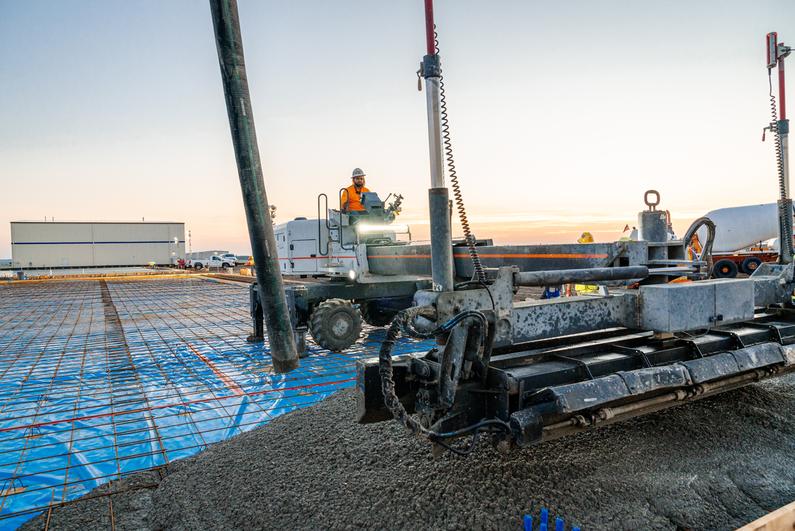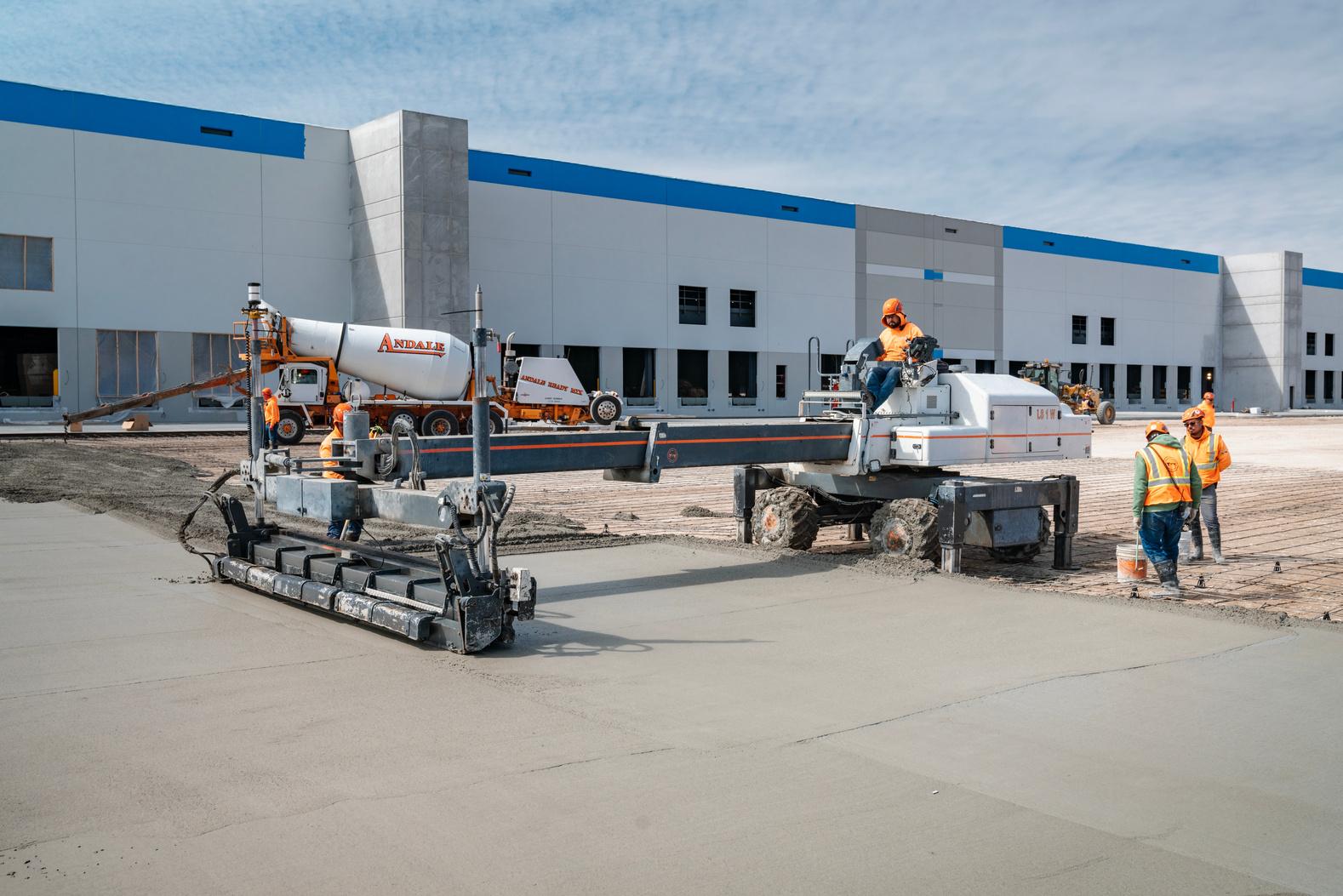 Construction for the one-million-square-foot facility began in early September 2021 with 460,000 cubic yards of earthwork fully completed by mid-December. Over 4,220 tons of Andale Slurry™ was used to provide a stable pavement base for the fulfillment center. The concrete paving for the surrounding roads and parking area is well over 1,300,000 square feet.