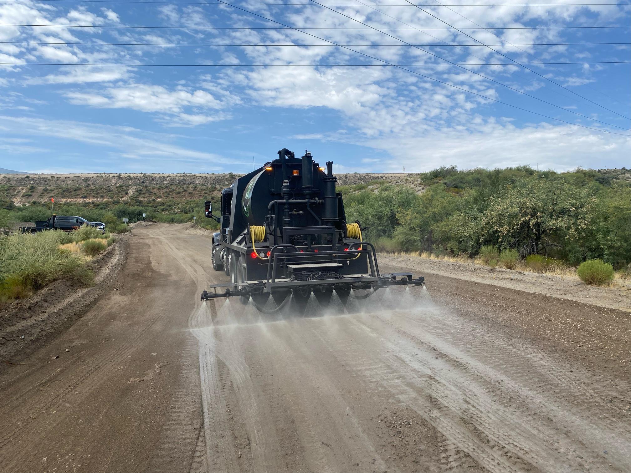 Unlike other products, DustKut™ encapsulates the material creating a hardened surface trapping the fines of the material, reducing the loss of aggregate, and the chance of mud on your project. DustKut™ keeps the dust down and conserves water because it is manufactured as a concentrated product.