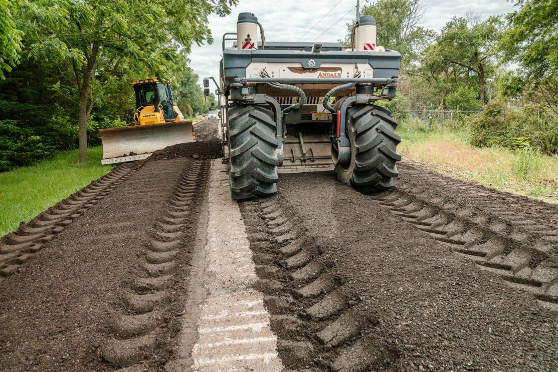 Utilizing Full Depth Reclamation allowed a cost-effective strategy to integrate the existing asphalt into the base. Andale Slurry™, a dustless form of cement soil stabilization, was the ideal choice for its speed, accuracy, and strength. The cement slurry was directly injected into the main roads to provide a strong base for the 4,205 SY of 6” RCC that will serve residents for years to come.