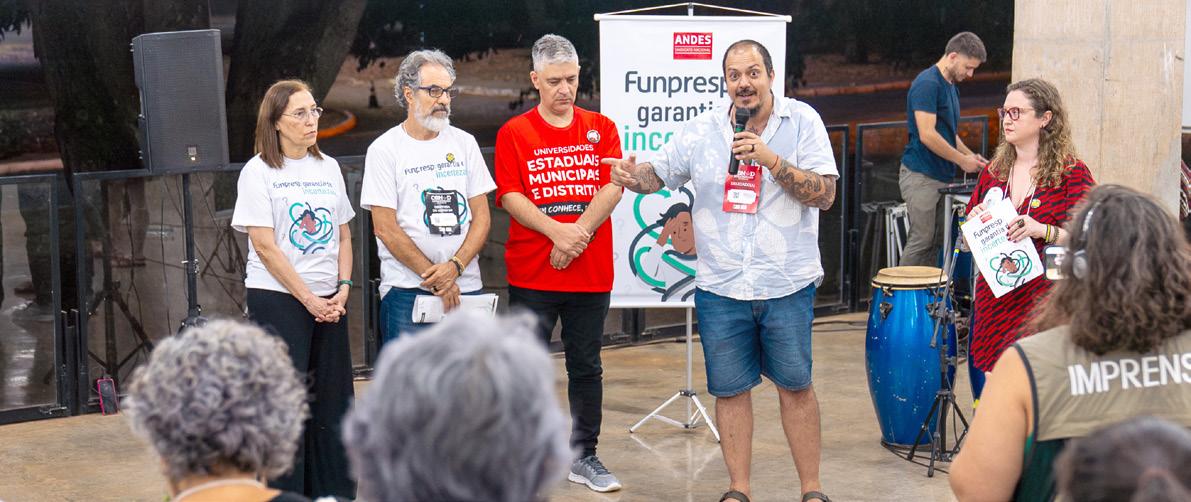 A campanha “Funpresp: garantia de incertezas” foi lançada durante o 15º Conad Extraordinário do ANDES-SN, realizado em outubro na Universidade de Brasília (UnB). Resultado da deliberação do 67º Conad, a campanha tem como objetivo reforçar a defesa da aposentadoria integral, com paridade, além de lutar pelo fim da contribuição previdenciária para aposentadas, aposentados e pensionistas. Organizada pelo Grupo de Trabalho de Seguridade Social e Assuntos de Aposentadoria (GTSSA), também denuncia os perigos associados à adesão ao Fundo de Previdência Complementar dos Servidores Públicos da União (Funpresp).