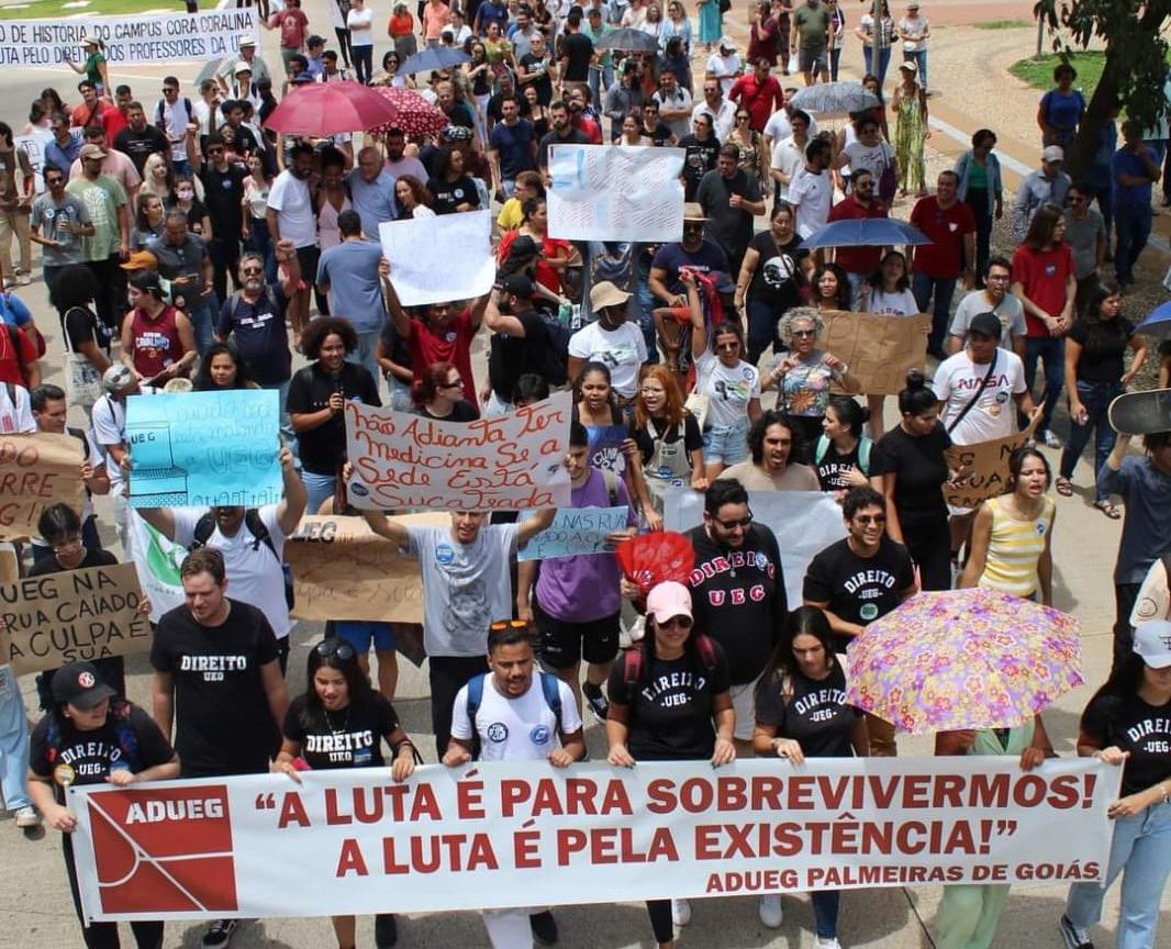 Docentes da Universidade Estadual de Goiás (UEG) tiveram que suspender, em 6 de março, a greve iniciada cinco dias antes, após liminar do Tribunal de Justiça do Estado de Goiás (TJ-GO). Mesmo sem qualquer desrespeito à legislação de greve, o TJ estipulou multa diária de R$ 100 mil ao movimento. A Associação de Docentes da UEG (Adueg Seção Sindical) recorreu da liminar.