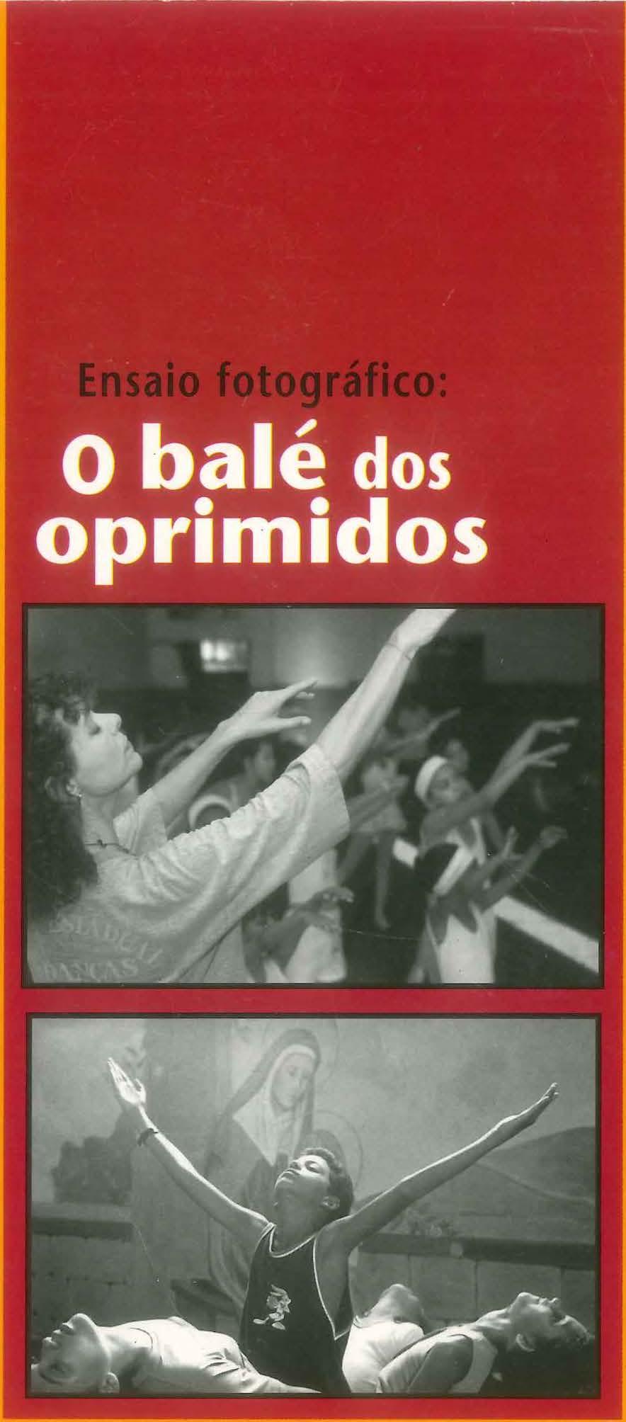 Epossívelqueotítulodesteensaiofotográfico, Balé dos Oprimidos, nosfizessepensar,deimediato,nasmanhase artimanhasqueumnúmerocadavezmaiordebrasileiros tivessedefazernodia-a-diaparadarcontada sobrevivência,driblandoadversidades,advindasda injustiçasocial,parasesentirminimamenteumcidadão. Assim,talvezesperássemosverpessoassurfandosobre trens,equilibrandoseuspoucospertencessobreaspróprias cabeças,ziguezagueandoentreautomóveisnasavenidasde nossascidades...E,naverdade,issotudosetorna,defato, umgrandeeinorquestradobaledosoprimidos.
