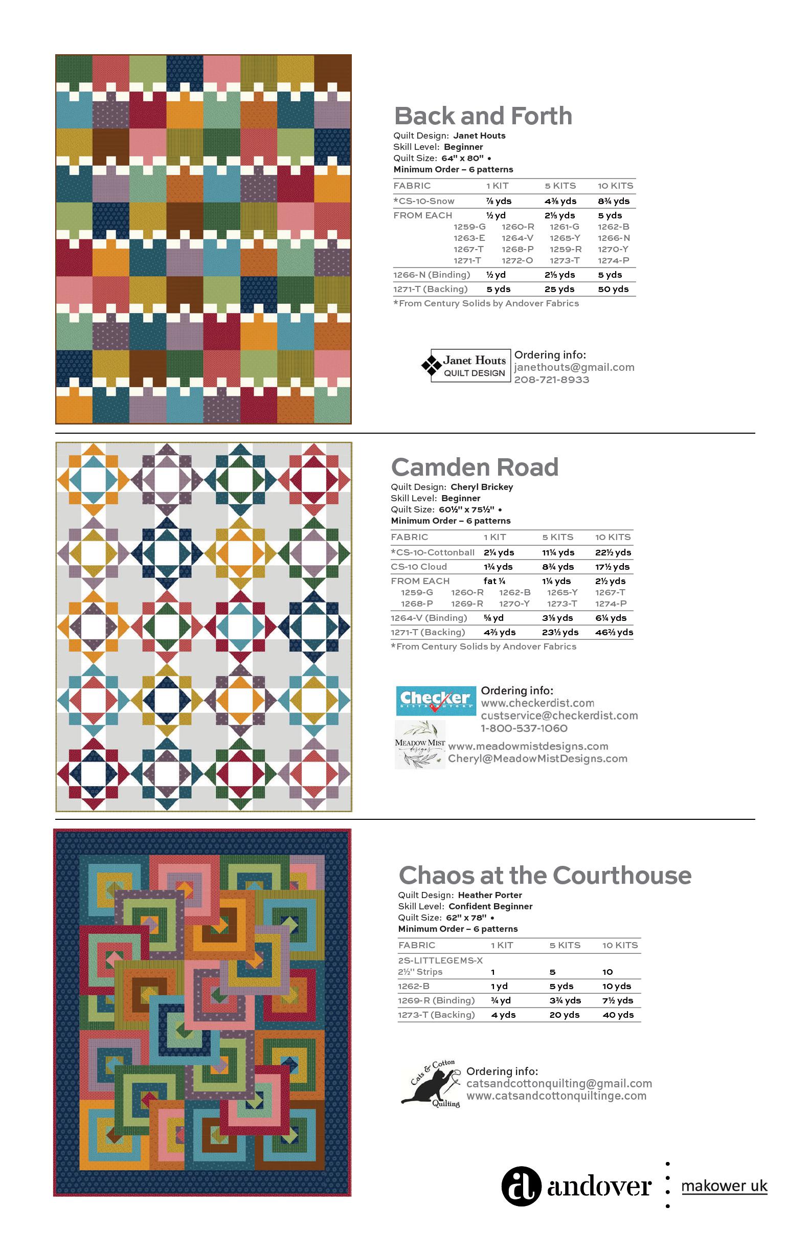 Quilt Design: Alison Glass Skill Level: Beginner Quilt Size: 521/2" x 64" Free pattern available FABRIC 1 KIT 5 KITS 10 KITS One Fat Quarter Bundle 1 5 10 1282-L (Binding) 1/2 yd 21/2 yds 5 yds 1283-L (Backing) 31/2 yds 171/2 yds 35 yds