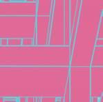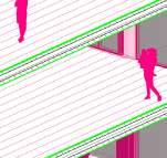 An interior view exposing glulam beams that form the Gallery space. Only line patterns produce the image and they reflect the amount of engineered wood employed in the space.