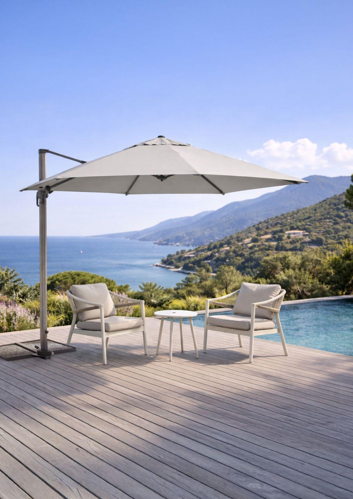 Das Leben im Freien erfordert Lösungen, die zu jeder Tageszeit Komfort, Schutz und Nutzungsfreiheit bieten. Sonnenschirme und Pergolen entstehen genau aus diesem Anspruch heraus: einladende, funktionale und ausgewogene Räume zu schaffen, in denen Zeit auf natürliche Weise erlebt werden kann. Unsere Sonnenschirme und Pergolen sind so konzipiert, dass sie sich harmonisch in Gärten, Terrassen und Außenbereiche jeder Größe einfügen. Robust, elegant und einfach in der Handhabung verbinden sie ästhetische Sorgfalt mit Funktionalität und werden zu zentralen Elementen des Raums –nicht nur zu einfachen Accessoires.