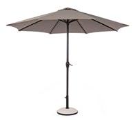 WEISSES POLYESTER-DACH 250GR/M2 MIT PA(POLYAMID)-BEZUG MIT WINDKAMIN. KREUZFÖRMIGER STAHLSOCKEL. 360° SCHWENKBARE STANGE MIT FUSSPEDAL. VERTIKALE NEIGUNG MIT 5-POSITION-GRIFF (1). EINSCHLIESSLICH