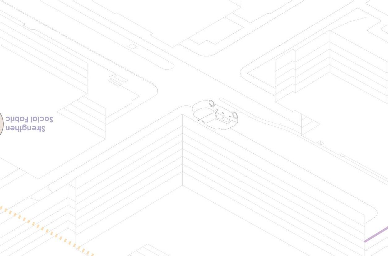 The NOMA Nest creates a home for all people within the community by inviting individuals to socialize in basketball courts, skateboarding parks, outdoor picnic areas, a rooftop fitness space, and rooftop gardens that are all connected to the NOMA headquarters and courtyard which acts as a central hub for the community.