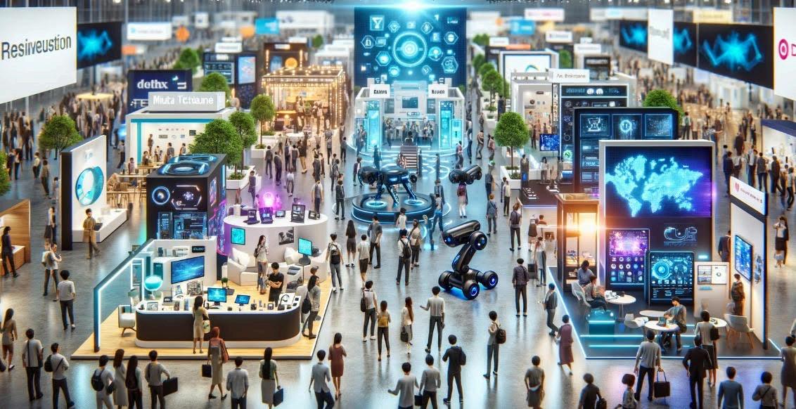 cidad d rob futurisc num feir d tecnologi . ‘