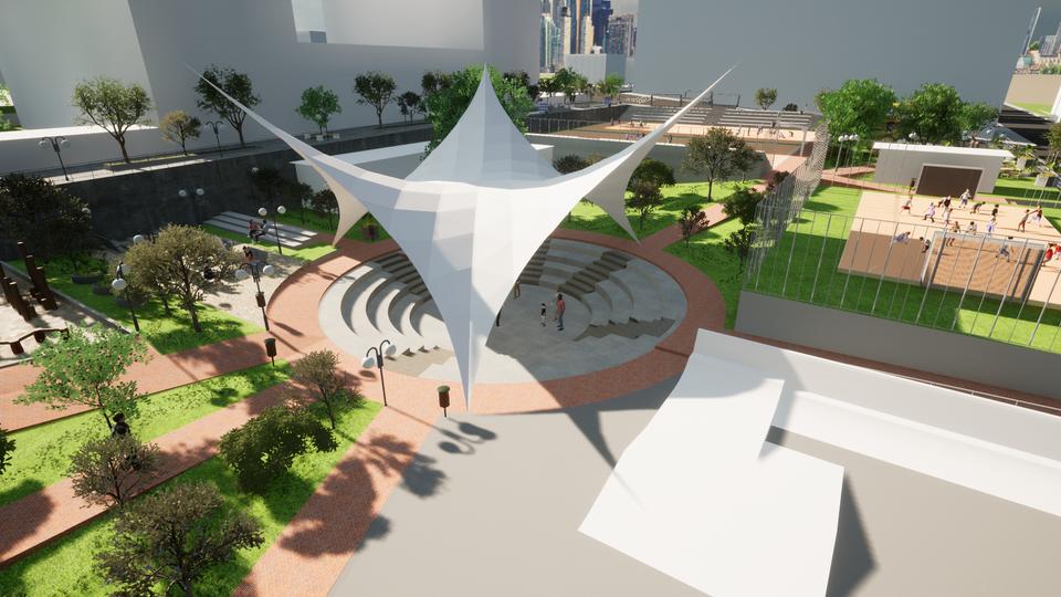 Nuestro parque busca ofrecer la opción de permanecer D señamos un parque para quedarse Bancas con respa do y cobertura frente al sol juegos flexibles y seguros, Me or ilum nación zonas de contemplación, espac os para rea izar deportes y actividad fís ca