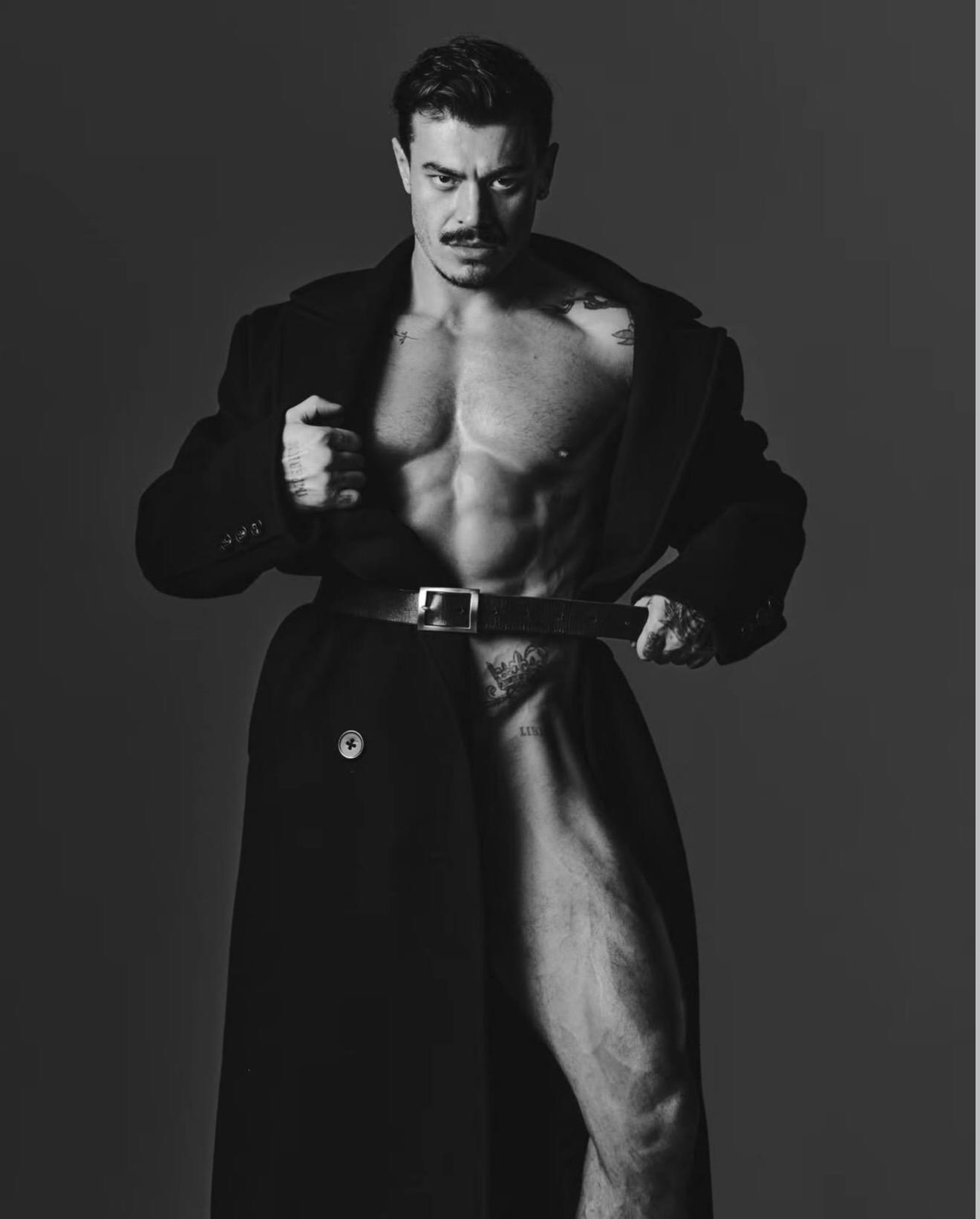 The leather biker aesthetic situates the image firmly within a specific subsection of gay culture, one historically rooted in hypermasculinity, rebellion, and chosen brotherhood.The tight, shorts function as an unmistakably queer visual code, enhancing the erotic gaze and reclaiming the male body as an object of desire.The “Lord” belt introduces a layer of irony and tension, subtly referencing the religious trauma experienced by many gay men and the lasting impact of moral shame.The hairy, muscular model embodies the archetypal ‘daddy’figure, a celebrated stereotype within gay culture that signifies authority, protection, and sexual confidence.