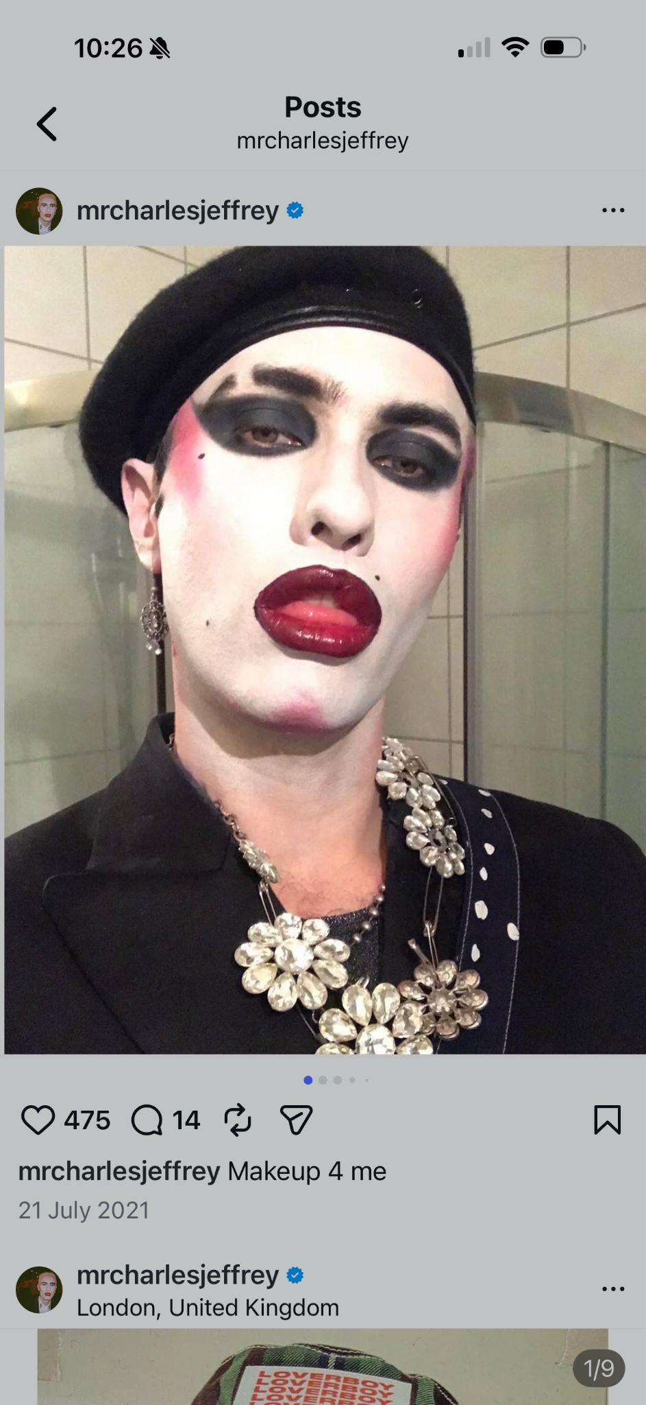 ● The pearls around the neck, the stockings and the fur coat, feel like a reference to early hollywood glamour. Mixed with the leather underwear and knee high platform boots its unmistakable queer.