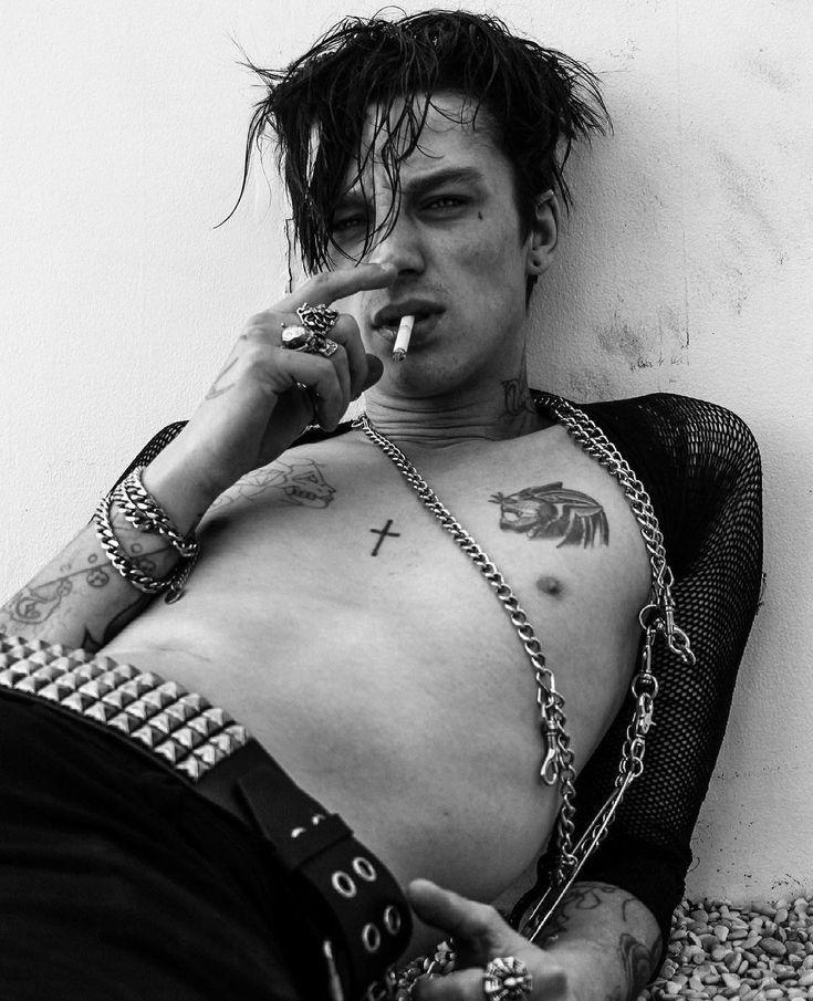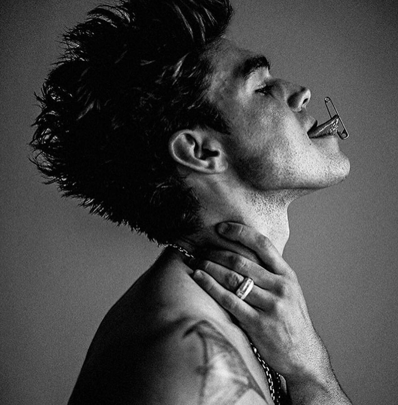 I think Damiano is one of the people who has been most inspirational within this project, as a hetrosexual man, he fully embraces sex, intimacy and queer culture within his fashion and styling. I love the use of snakeskin leather and low cut and tight onepiece, it feels queer and dangerous yet strong and narrative.