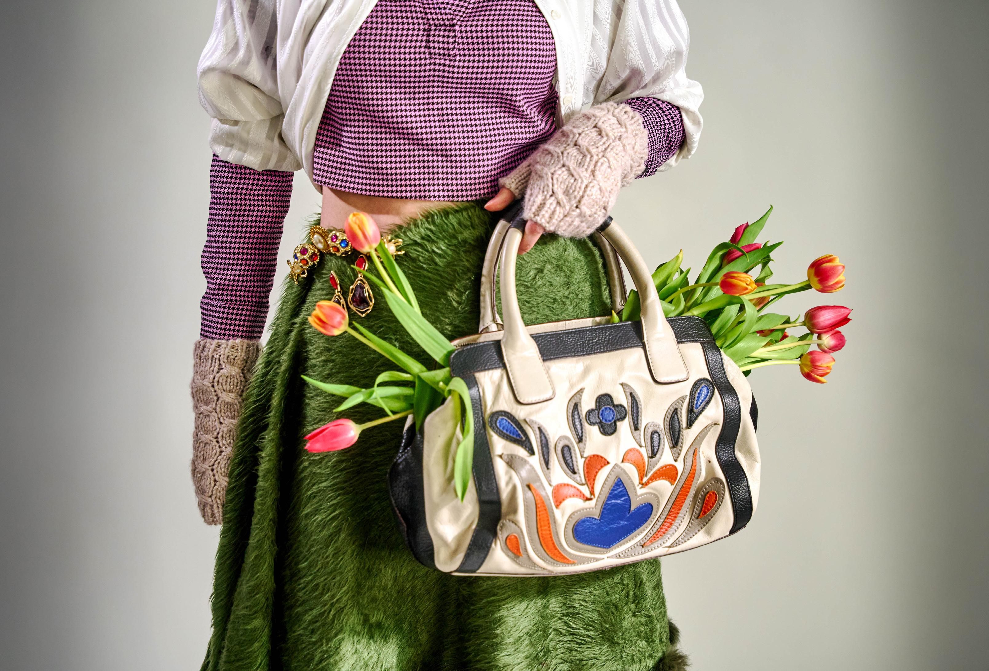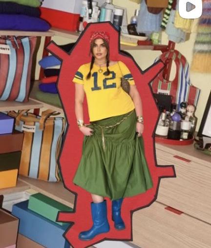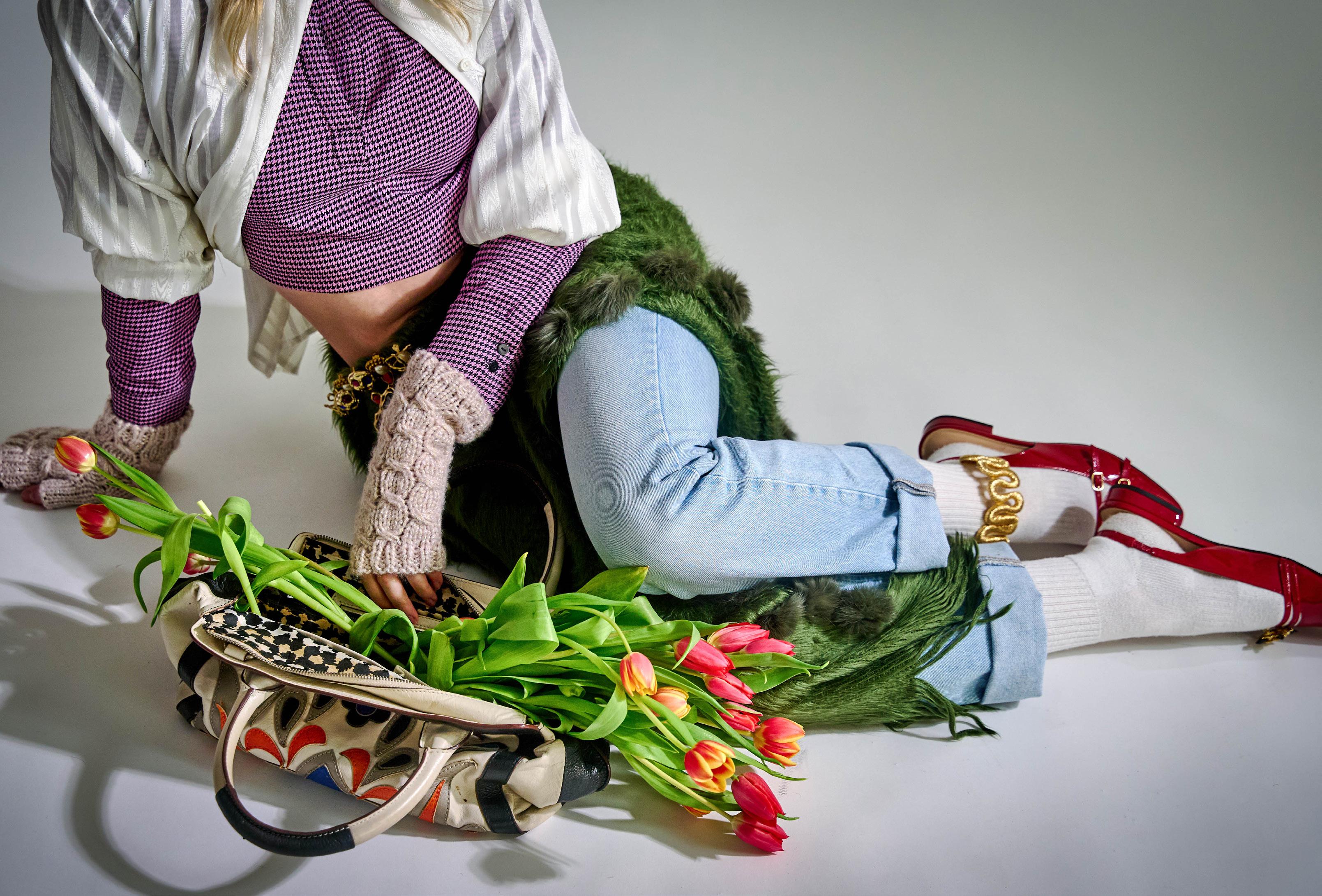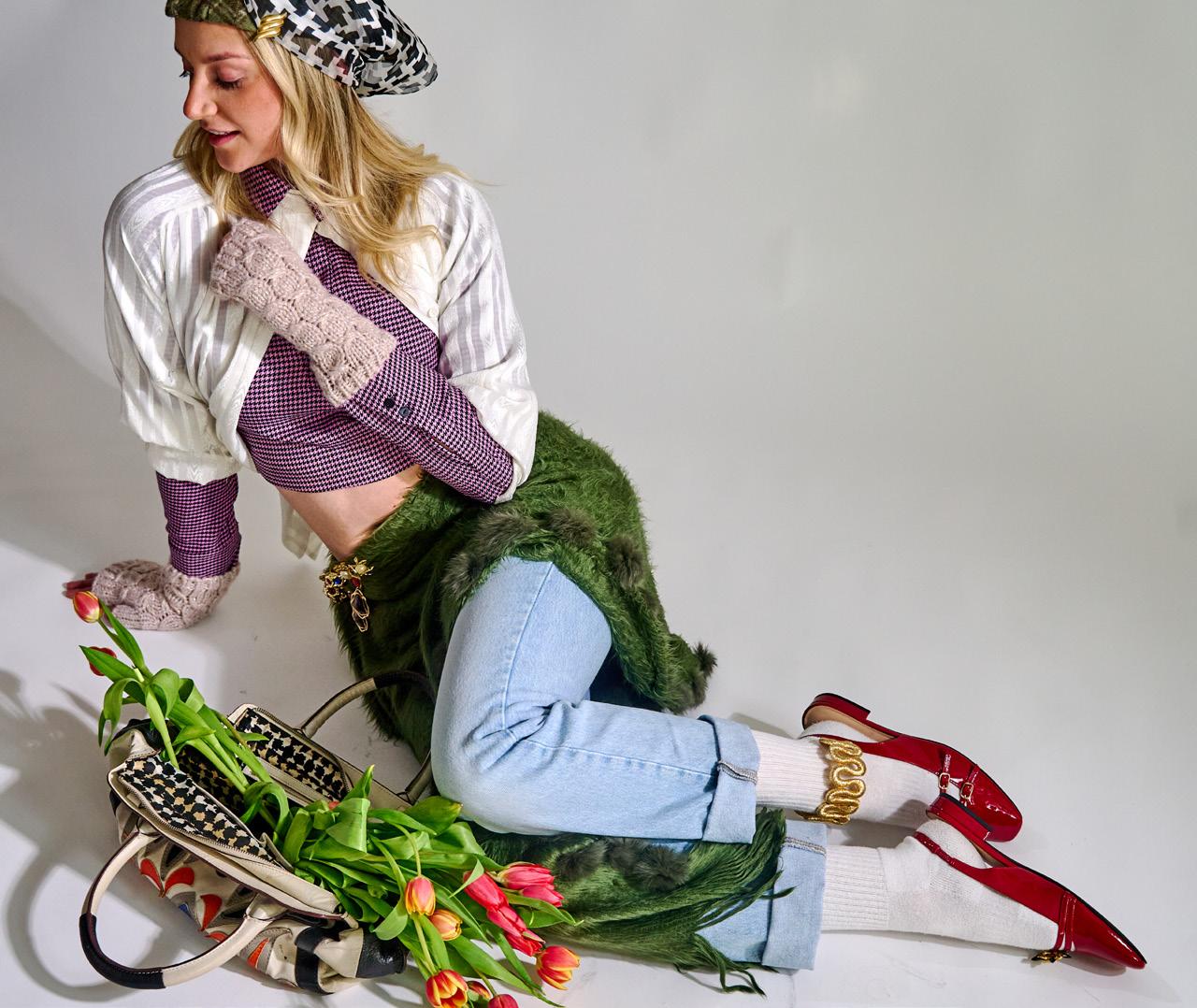 Explore clashing prints, bold stripes, and bright colours. Experiment with layering – think textures, unexpected combinations, and volume. Incorporate upcycling principles by reworking or repurposing existing garments. Design with an Autumn/Winter mood in mind – include gloves, knitwear, and layering pieces to reflect the season. The final styling should feel editorial, suitable for a high - fashion photoshoot.