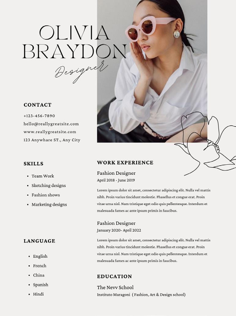 I think that this CV is the perfect representation of my brand. I think that it conveys a professional, classic, and high-end look that I want to portray. I feel like changing th ebidy text from a serif font to a sans-serif font improves the legibility of the information and it makes the the look and apperance of the the CV as a whole look far more professional, creative and fashion forward.