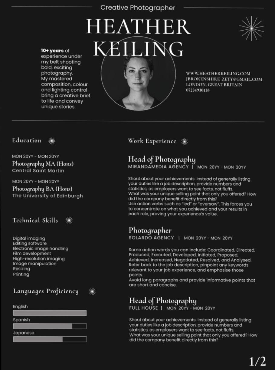 I think before my next draft I want to go back to inspiration. I think I need to find some creative CVs that allign more with my brand and see how I can tailor them to my aesthetic.