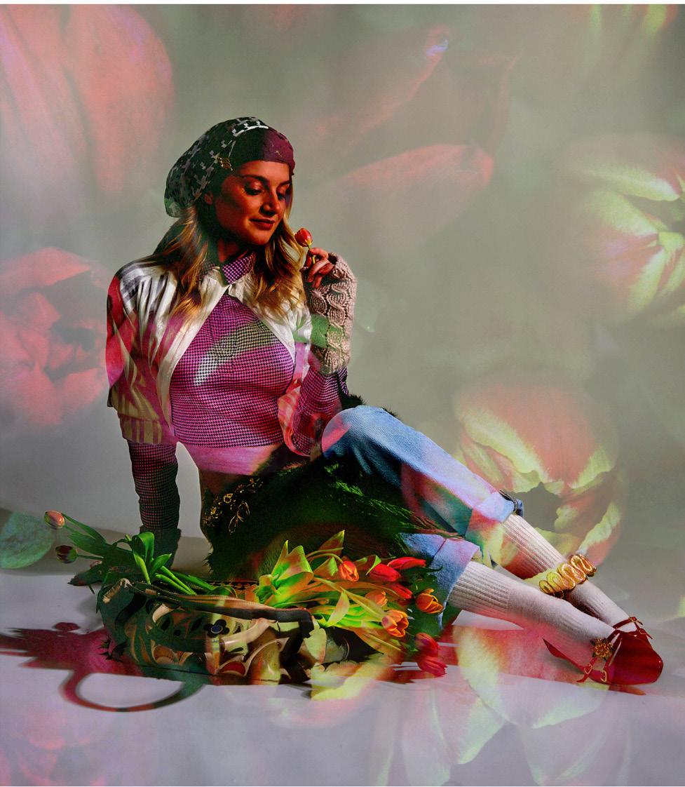 With this experiment i love the effect that overlaying the tulips has, it feels like a projection. however it is againg very distacting to the look and you struggle to see the look itself.