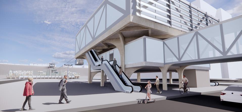 The stations situated in Strip District and Troy Hill share the same structural and floor construction, with ticketing on the raised first floor, connected via a bridge extension to across the street, and a cable car boarding level.