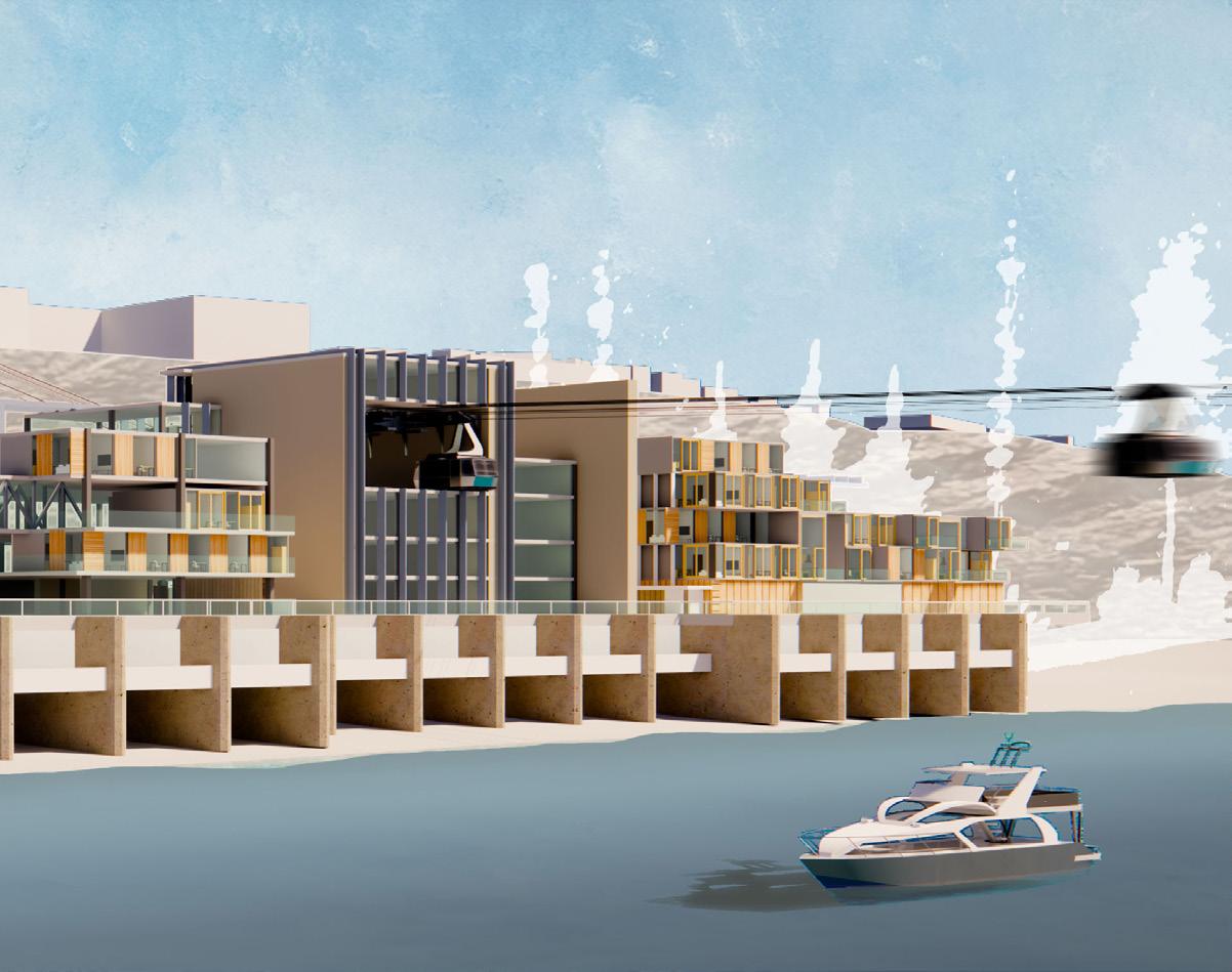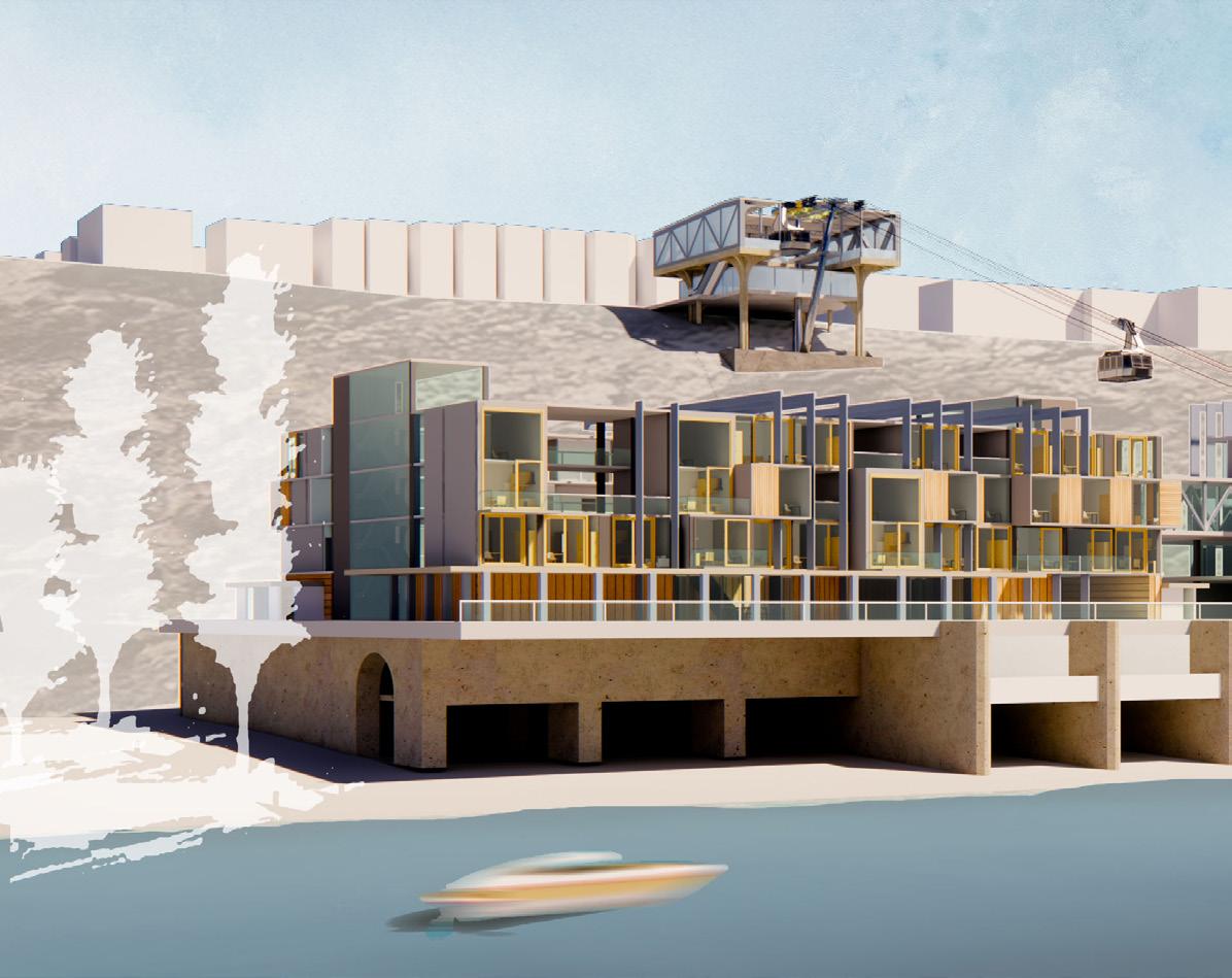Using the river as a means of travel, locals and event visitors can access the Wools Lofts housing siutated on the previous site of the Pittsburgh Wools Company. Repurposing the site, the housing aims to not only provide housing but also 'bridge' the areas on opposing sides of the river like Strip District and Troy Hill through river travel and cable cars, generating a nexus corridor that both connects the banks and receives access