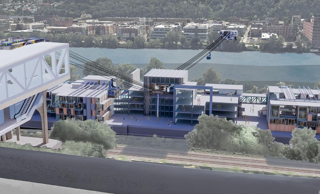 By bridging and connecting to the Wool Lofts housing, the cable line not only allows a faster and more direct way to get from Troy Hill to Strip District but also creates a crossed transportational hub by connecting the access to the river.