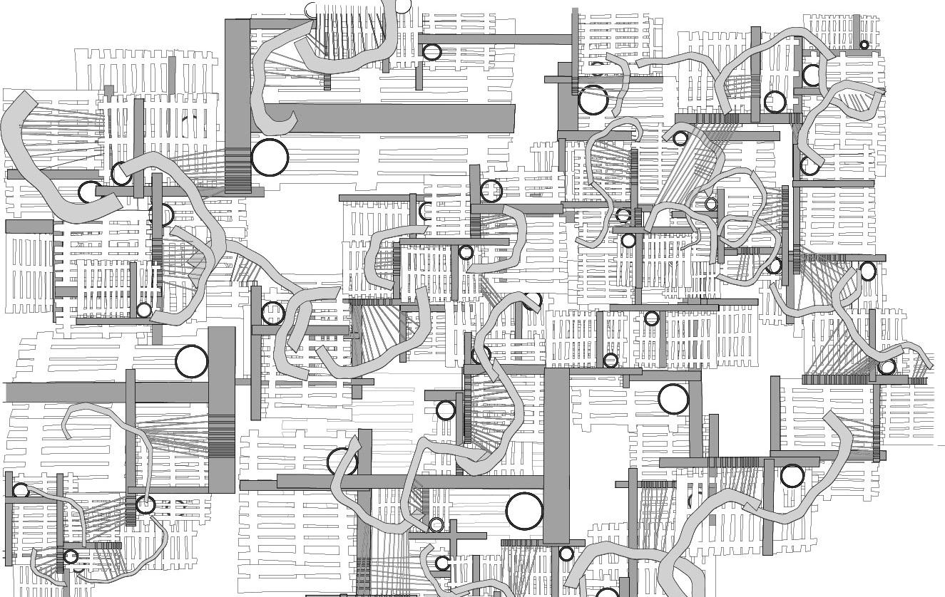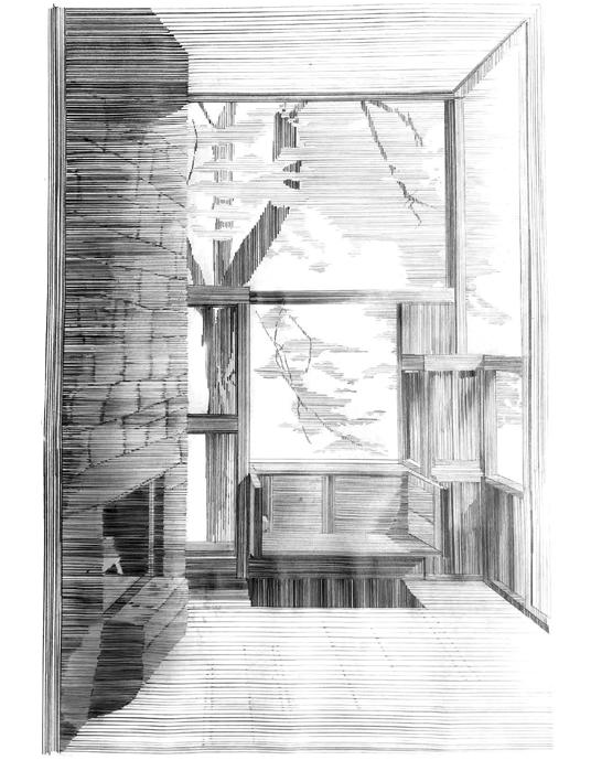 This generative field drawing draws inspiration from the Majau Laut Boat houses' construction technique of layering the floor planks that also allow refracted light through and the concaving and convexing shapes of Matmata Caves.