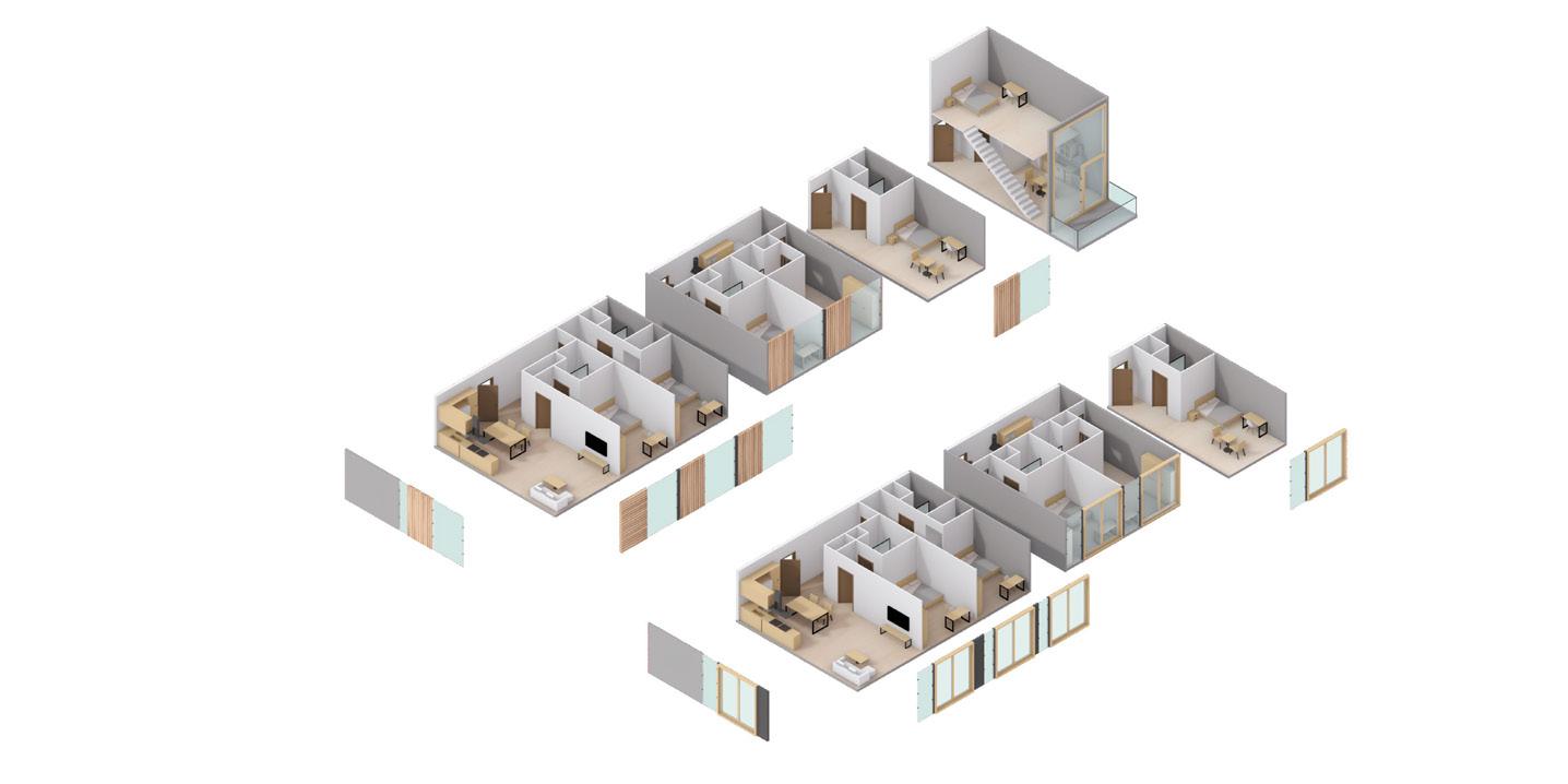 The residential opportunity is comprised of a range of housing units, from single studio or two-floored lofts to 2-bed 2-bath units. More options include units with balconies and living rooms.