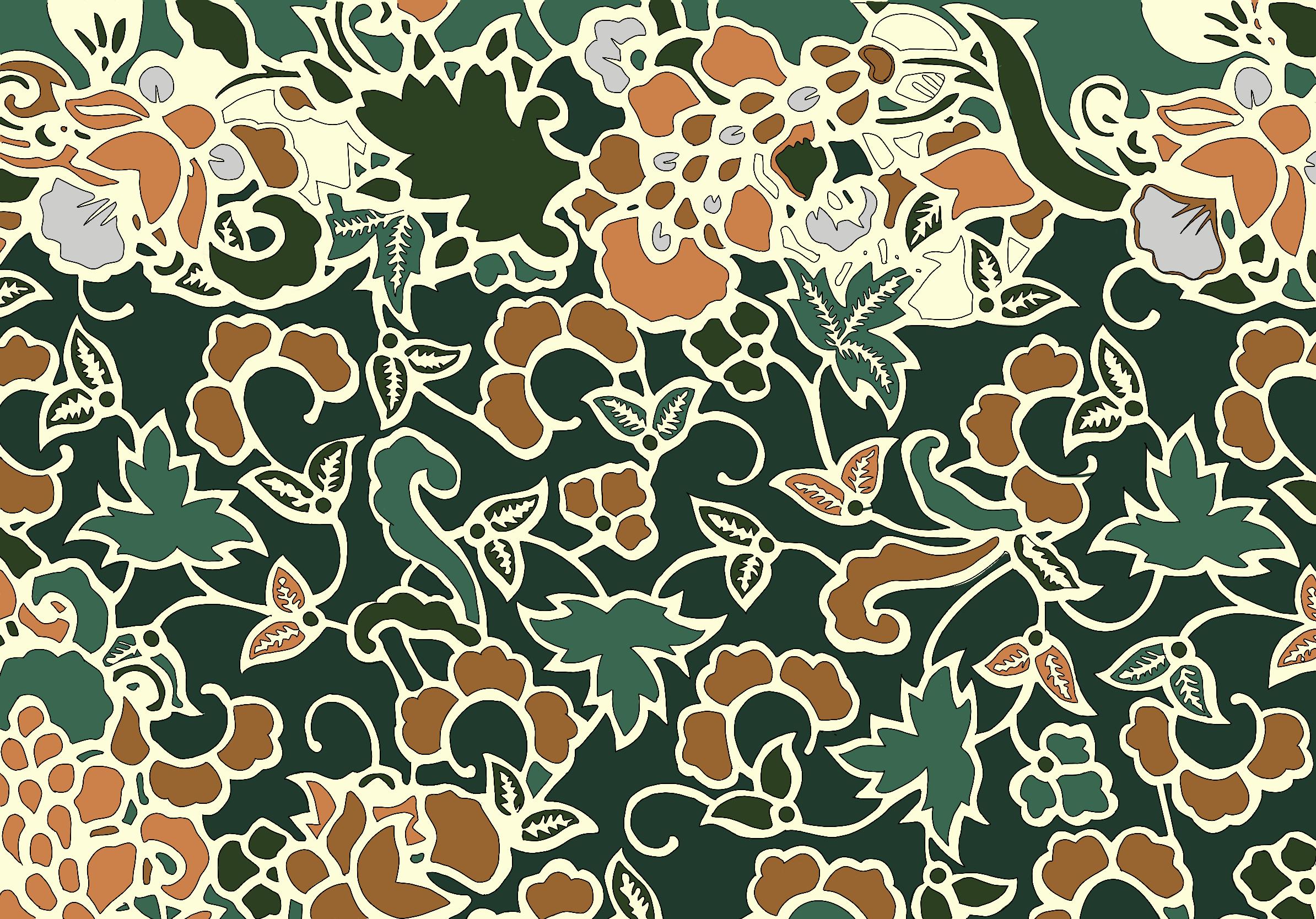 Batik print technique is a technique of wax-resist dyeing applied to the whole cloth. This technique originated from the island of Java, Indonesia.