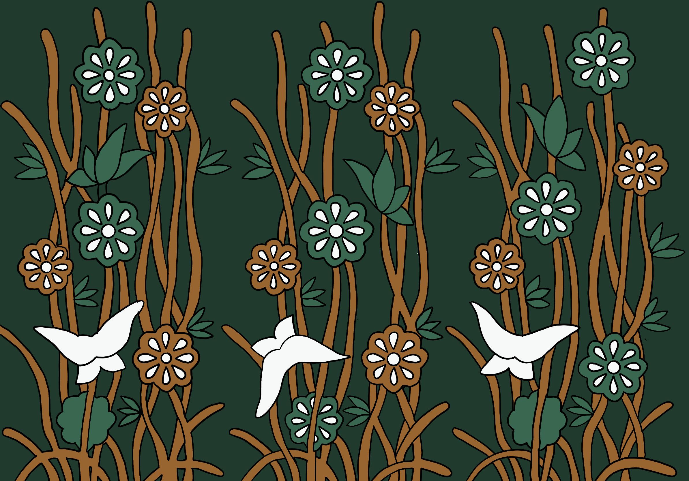 The Kawung is one of the oldest batik motifs, consisting of a four lobed stylised flower, based on the Areca Palm blossom. The cross section of the palm fruits and their seeds are also said to inspire the design. Part of the Ceplok (circle) family of designs, the Kawung can be arranged as intersecting circles in some of its variations, making dynamic repeated patterns.