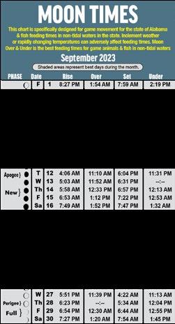 F S Su M T W Th F S Su M T W Th F S Su M T W Th F S Su M T W Th F S 12:42 AM / 0.32 12:38 PM / 0.72 01:06 AM / 0.48 01:49 PM / 0.52 01:32 AM / 0.64 12:17 AM / 0.79 01:00 AM / 0.90 01:51 AM / 0.95 02:49 AM / 0.96 03:41 AM / 0.94 06:59 AM / 0.91 08:04 AM / 0.93 08:51 AM / 0.93 09:33 AM / 0.90 10:15 AM / 0.84 11:01 AM / 0.75 11:49 PM / 0.33 11:52 AM 0.65 12:07 AM / 0.42 12:50 PM / 0.54 09:53 PM / 0.58 01:59 PM / 0.44 10:28 PM / 0.72 11:11 PM / 0.84 12:00 AM / 0.94 12:55 AM / 1.01 02:01 AM / 1.06 03:10 AM / 1.07 04:13 AM / 1.05 07:42 AM / 1.01 08:43 AM / 0.99 09:38 AM / 0.90 10:41 PM / 0.35 10:39 AM / 0.76 11:01 PM / 0.49 11:46 AM / 0.59 11:19 PM / 0.65 10:12 PM / 0.81 04:29 AM / 0.23 06:17 PM / 0.30 06:04 AM / 0.19 05:57 PM / 0.35 07:11 AM / 0.17 12:53 PM / 0.06 01:55 PM / -0.06 02:52 PM / -0.13 03:54 PM / -0.16 04:54 PM / -0.17 05:40 PM / -0.17 06:17 PM / -0.14 06:49 PM / -0.07 07:10 PM / 0.02 07:07 PM / 0.14 07:01 PM / 0.26 02:36 AM / 0.25 05:29 PM / 0.34 04:54 AM / 0.22 05:18 PM / 0.37 05:55 AM / 0.15 04:45 PM / 0.37 06:44 AM / 0.10 07:40 AM / 0.08 12:29 PM / 0.03 01:51 PM / -0.08 02:54 PM / -0.16 04:14 PM / -0.21 05:09 PM / -0.23 05:44 PM / -0.18 06:02 PM / -0.06 06:10 PM / 0.11 02:09 AM / 0.26 06:09 PM / 0.30 04:24 AM / 0.19 04:23 PM / 0.41 06:11 AM / 0.08 1 2 3 4 5 6 7 8 9 10 11 12 13 14 15 16 17 18 19 20 21 22 23 24 25 26 27 28 29 30 PRINT, DIGITAL OR BOTH! SUBSCRIBE... 1) CALL 877.314.1237 2) ORDER ONLINE AT GREATDAYSOUTDOORS.COM Hunting & Fishing in Alabama & the Florida Panhandle GET YOUR SUBSCRIPTION TODAY! ALABAMA TIDE CHARTS