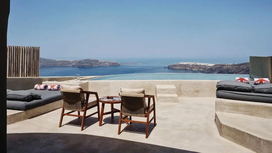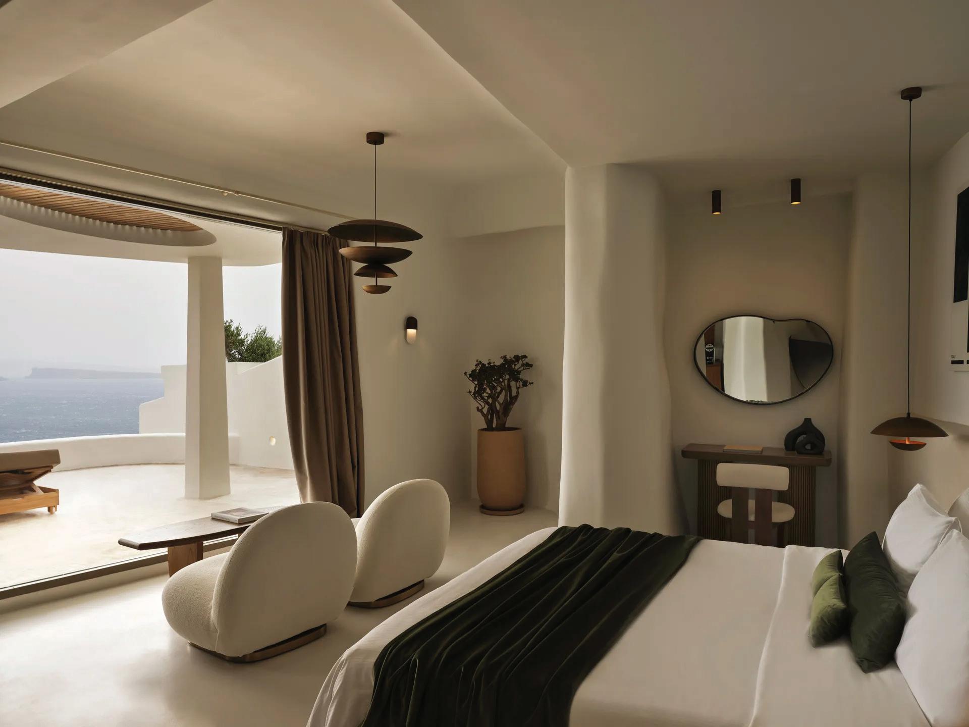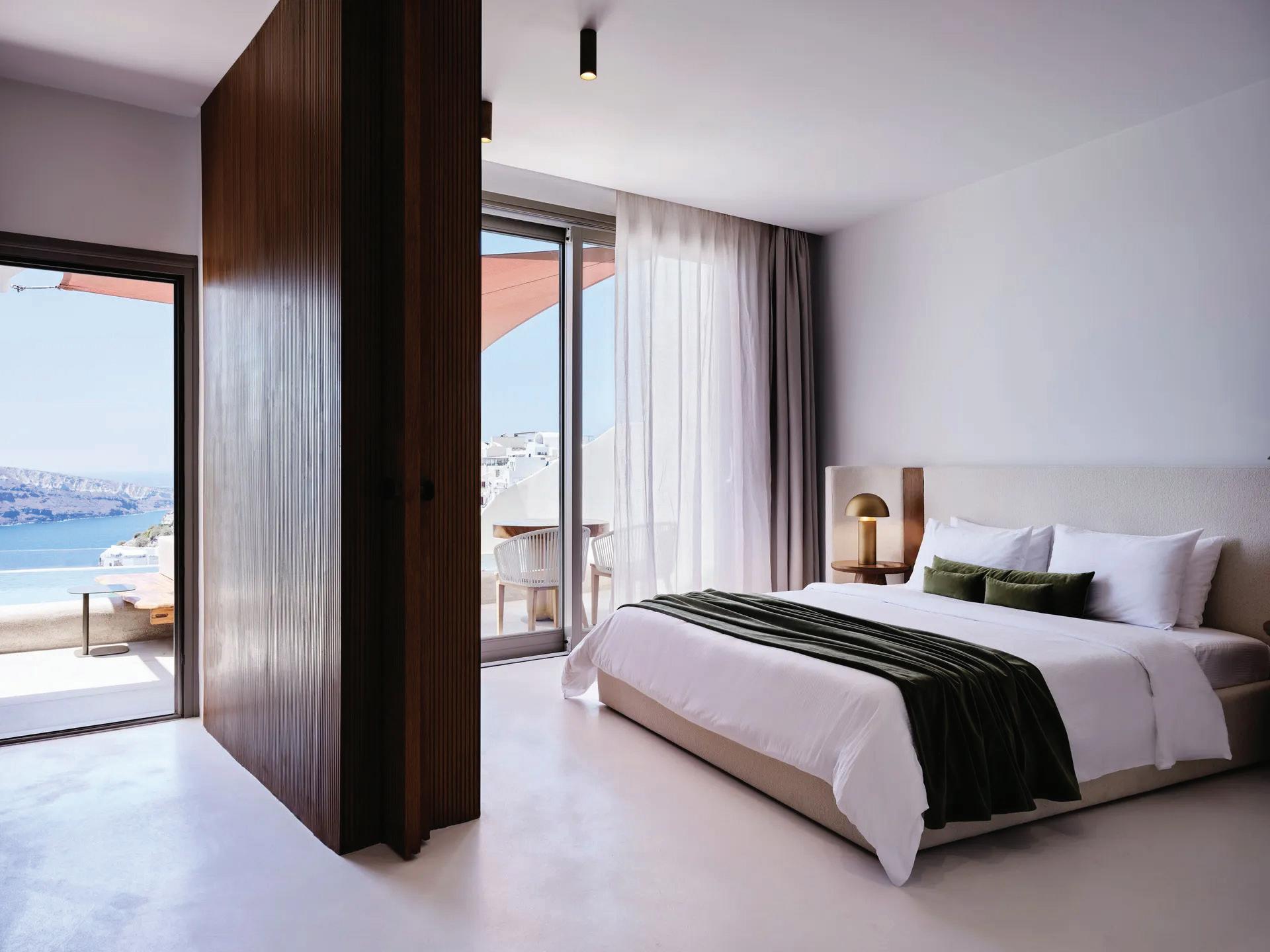 The brand-new Two-Bedroom Villa offers a luxurious escape with stunning caldera views.