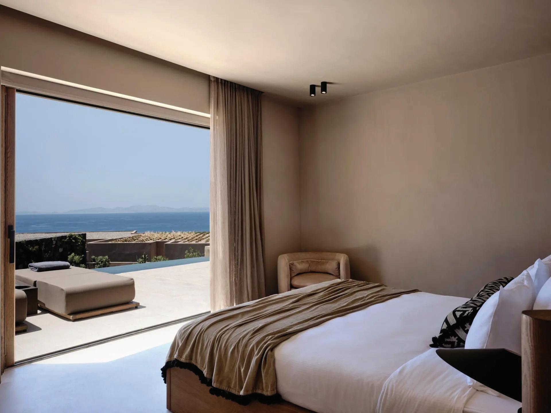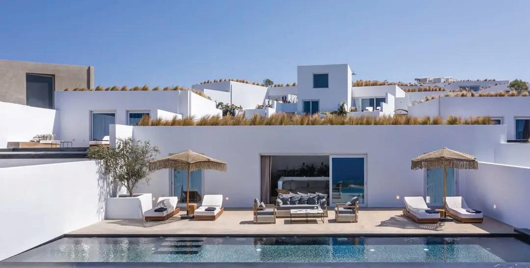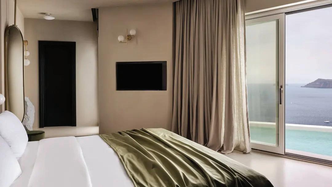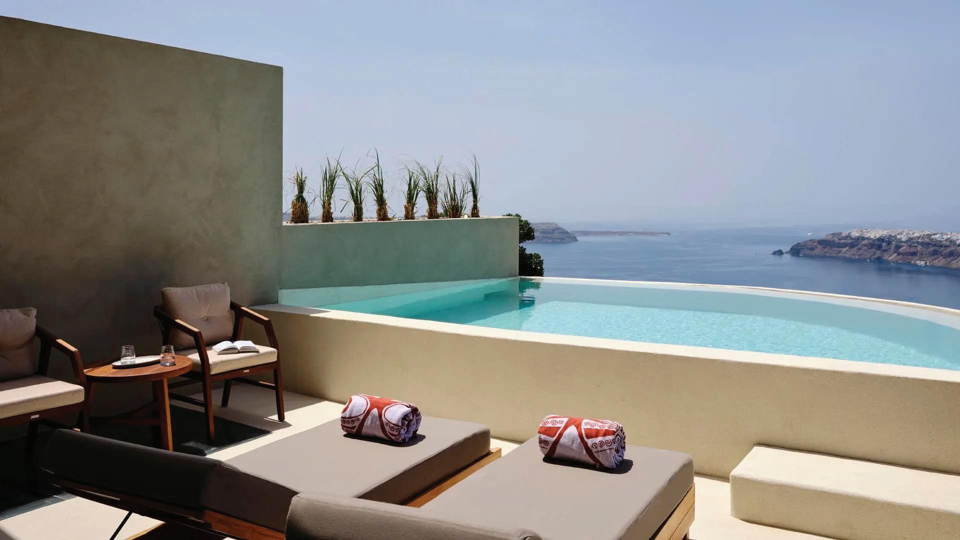 The brand-new Two-Bedroom Villa offers a luxurious escape with stunning caldera views.