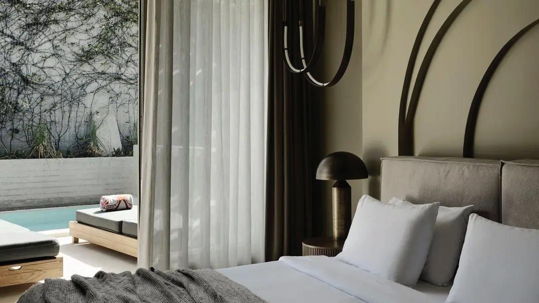 An architectural showpiece with minimal boho design and modern art elements, this two-storey villa features three bedrooms, each with an en-suite bathroom.