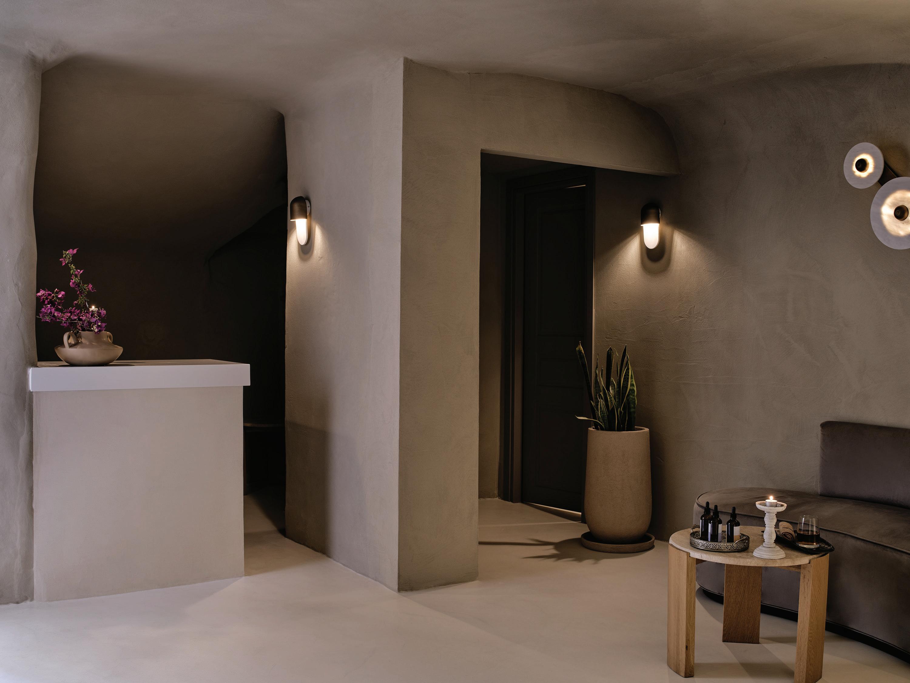 This perfectly describes our discreetly hidden spa within the heart of Santorini’s Caldera wall.