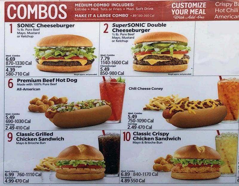 Sonic Combos Menu With Prices