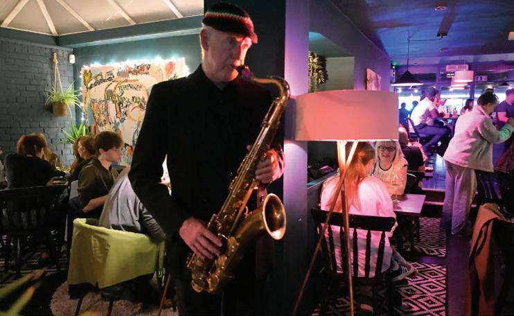 On Saturday evenings a resident saxophonist and guitarist alternate weekly, weaving jazz-inflected sets that drift through the
