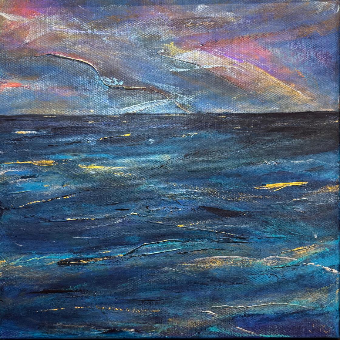 As an abstract artist based in Devon, Angela’s work channels the mystery, energy and beauty of the natural world. Her bold, contemporary artwork sparkles, reflecting iridescent light and adapting to surroundings as if alive with the rhythms of nature.
