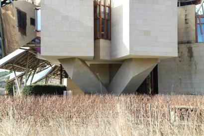 Itistheoldestand mosttraditionalwinery inLaRioja Itbeganits journeyin1860and standsoutforits pioneering,innovative, non-conformist characterand introducedFrench winemaking techniques.Alwaysone stepaheadoftherest, pavingthewaybut withoutforgetting traditions Inthis frameworkthat combinestraditionand future,theyconceived theideaof constructinga revolutionarybuilding, capableofsymbolizing theinnovativespiritof thecompany onthree giantcolumnsand looksoutoverthe landscapeofthetown, vineyardsandthe Cantabrianmountains beyond ocapitaliseon solareffects,Gehry coveredthestructure withundulatingsteel panels(areferenceto thedensityandcolours ofwine)alongside traditionalsandstone