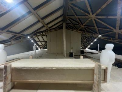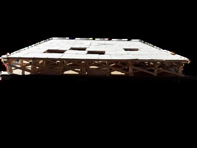 Aquípodemosobservarel plano estructural del pabellón,dondesemuestra la configuración de la cimbra. Este elemento definelaformaysoporte provisionaldelatechumbre, permitiendoentendercómo sedistribuyenloselementos que refuerzan el sistema constructivo.