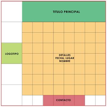 Conjunto de líneas y guías que distribuyen el espacio compositivo de manera organizada. Encima de ella se sitúan los elementos compositivos de cualquier producción gráfica: títulos, subtítulos, texto, imágenes etc.