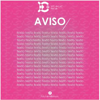 "¡Aprende algo nuevo! En Fab Lab Ixtlahuac te ofrecemos el taller de [nombre del taller], donde descubrirás cómo transformar tus ideas en proyectos reales. ¡Inscríbete hoy y lleva tu creatividad al siguiente nivel! "
