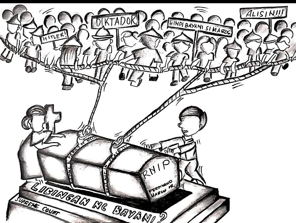 Noon pa man ay naging maluwang na ang usap-usapan kung dapat bang ilibing sa libingan ng mga bayani ang yumaong presidente ng Pilipinas na si Ferdinand Marcos Sr. Kilala siya bilang isang mahigpit na pinuno at gumamit ng marahas na pamamaraan upang mapanatili ang katahimikan sa bansa, pati na rin sa kaniyang mga patakarang hindi makatarungan upang makontrol ang sambayanan. Naging rason ito upang magkaroon ng rebolusyon sa bansa, kung si Marcos man ay ituring bayani ng iba, ito ay dapat dahil sa kaniyang pagbibigay daan upang magkaroon ng pagkakaisa na patalsikin siya.