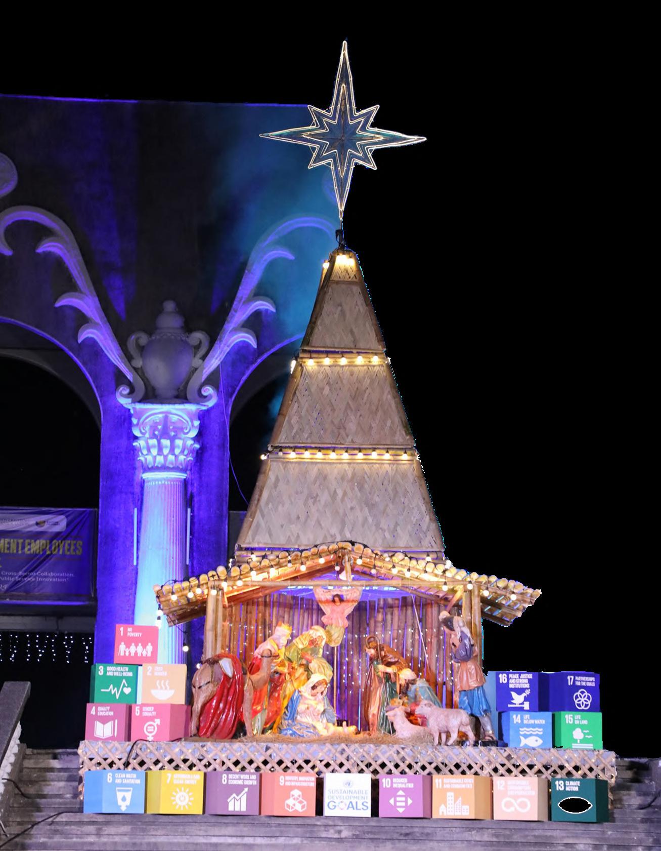 Tampok muli ngayong taon ang paggamit ng kawayan bilang pangunahing materyales sa paggawa ng Christmas Tree, na pinalamutian ng mga simbolo ng UN Sustainable Development Goals (SDG) bilang simbolo ng dedikasyon ng unibersidad para sa isang mas maunlad na hinaharap. Pinangunahan ng MMSU