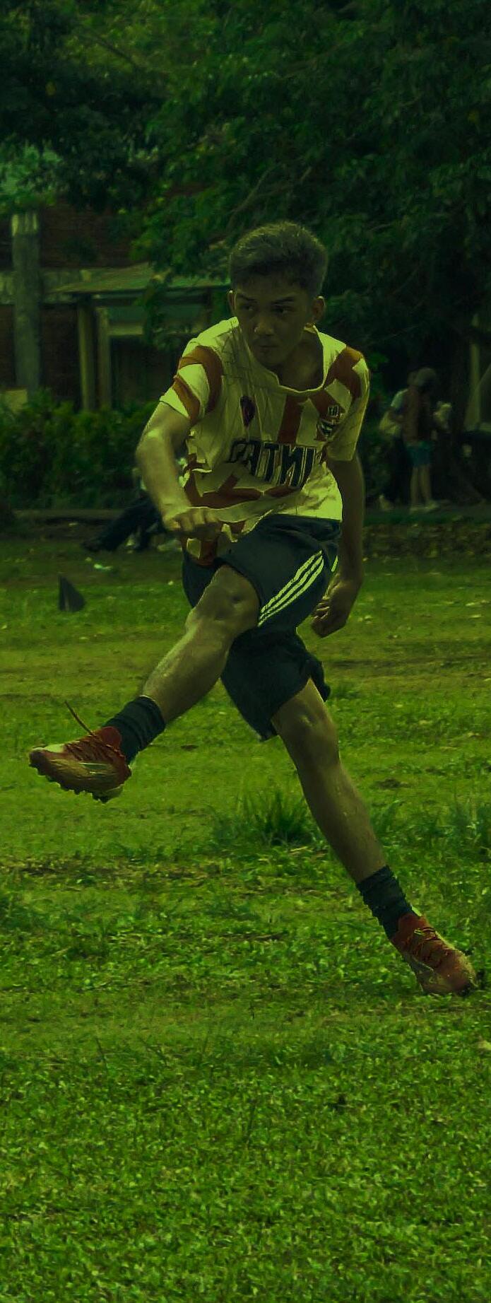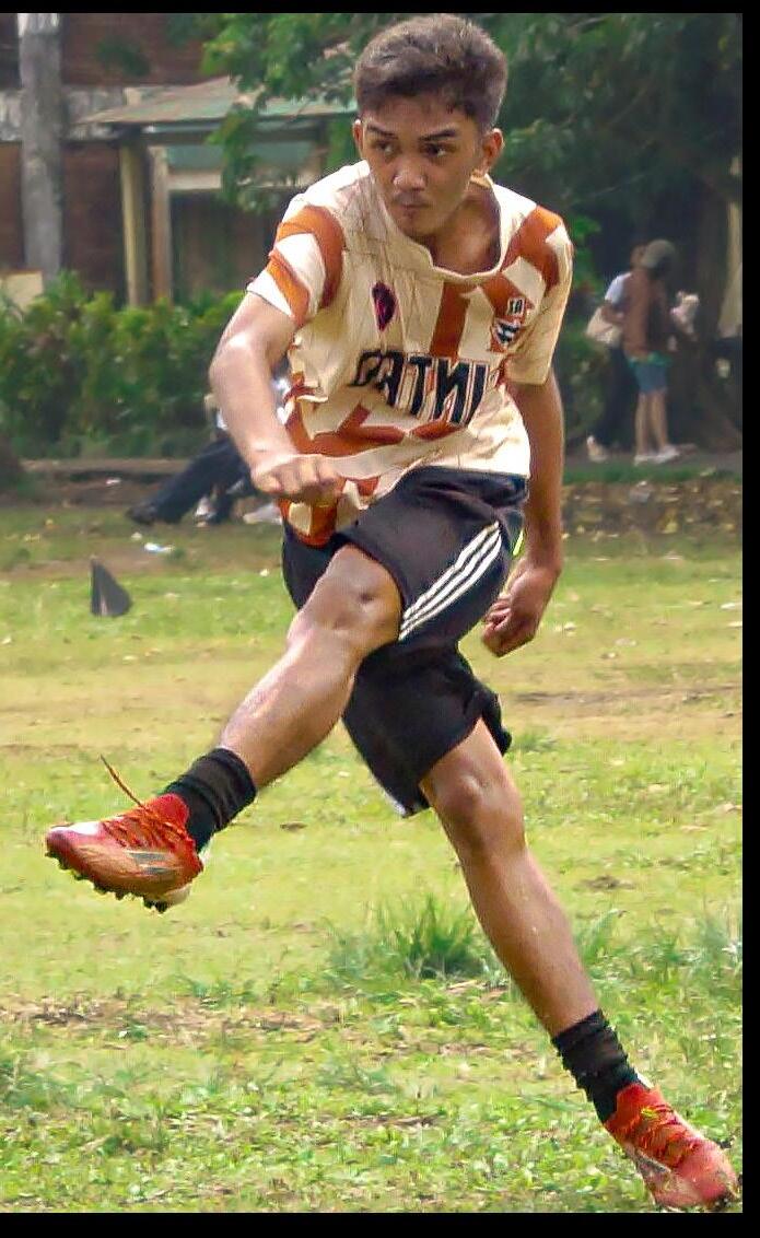 SIPA NG KAPALARAN. Raul Zenarosa ng Grade 11 Orcas sa kaniyang mabalasik na sipa sa Championship ng football sa Vinzons Pilot High School Intramurals, ika-22 ng Nobyembre, taong 2024 Kuha ni JOSSAINE ELISHA G. GASIS