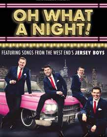 OH WHAT A NIGHT! Takes you back in time on a musical journey through the incredible career of Frankie Valli & The Four Seasons, now immortalised in the multi-award winning show Jersey Boys, which has been packing theatres worldwide since its debut in 2005. Valli’s unmistakable voice dominated the airwaves for more than two decades with classics such as Sherry, Let’s Hang On, Big Girls Don’t Cry, Can’t Take My Eyes Off You, My Eyes Adored You, December 63 (Oh What A Night), Bye Bye Baby, Who Loves You and many, many more.