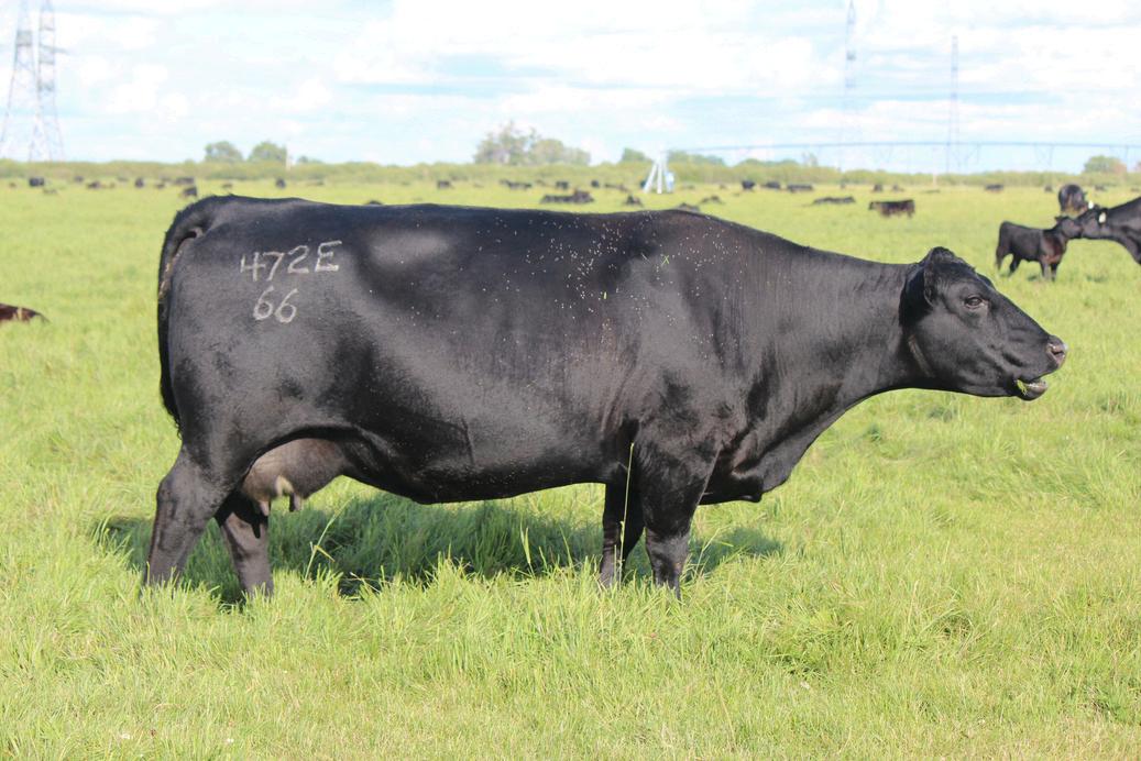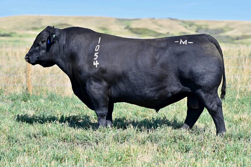 A walking bull at the Ranch. We were able to purchase half interest in Investment over the winter of 2024/25. Extremely excited that the great folks at Duralta Farms offered us the opportunity to purchase 1054J so he could walk the pastures at 66 Ranch. A female maker through and through. 1054J is backed by the absolutely beautiful female and herd bull maker, Flora 6078D. I think if you read through our herdsire footnotes you may see a common theme here of this prolific cow Flora 6078D. On the topside of 1054J’s pedigree is U2 Coalition 206C, a proven bull backed by another outstanding female U2 Erelite 109Z. You will want to keep all the females that are sired by these 1054J sons, the bred heifers and heifer calves at our place are at the front end of their pens. Bull calves average birthweight is 83 lbs. Heifer calves is 78 lbs. Owned with Murray Ranches.