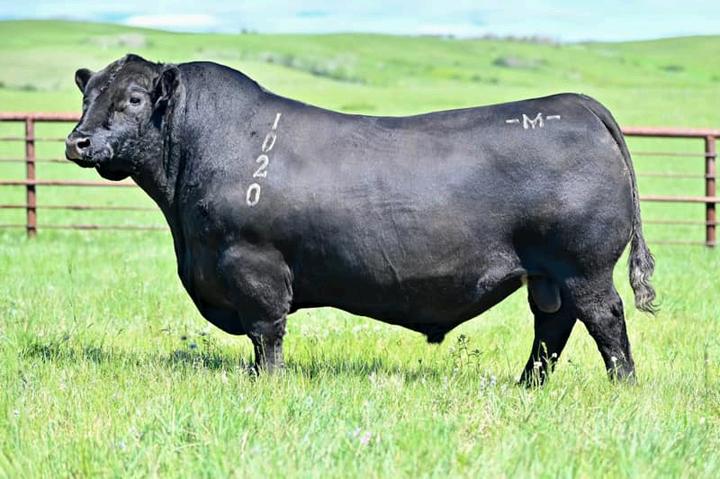 1020J was purchased from Merit Cattle Co. for his length of body, muscle pattern, depth of rib, and powerful hip, all while maintaining a moderate birthweight. The decision to own him was strongly influenced by the proven Flora 6078D cow family, known for exceptional udder quality and highly productive females. His daughters are the kind targeted for long-term herd building at 66 Ranch big-bodied, hairy, and structurally sound with excellent udders. Bull calves average 81 lbs at birth, heifer calves 75 lbs. Owned with Murray Ranches.
