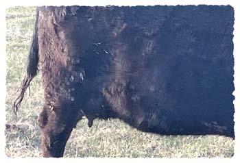 A walking bull purchased from Merit Cattle Co. for his moderate birthweight with great growth to use on our first calf heifers. His sire Thunderstorm 807F has an outstanding foot under him with a tremendous amount of heel. His dam Flora 6078D is as ideal of an Angus cow as you will find. Impeccable udder. Expect the calves to come easy and